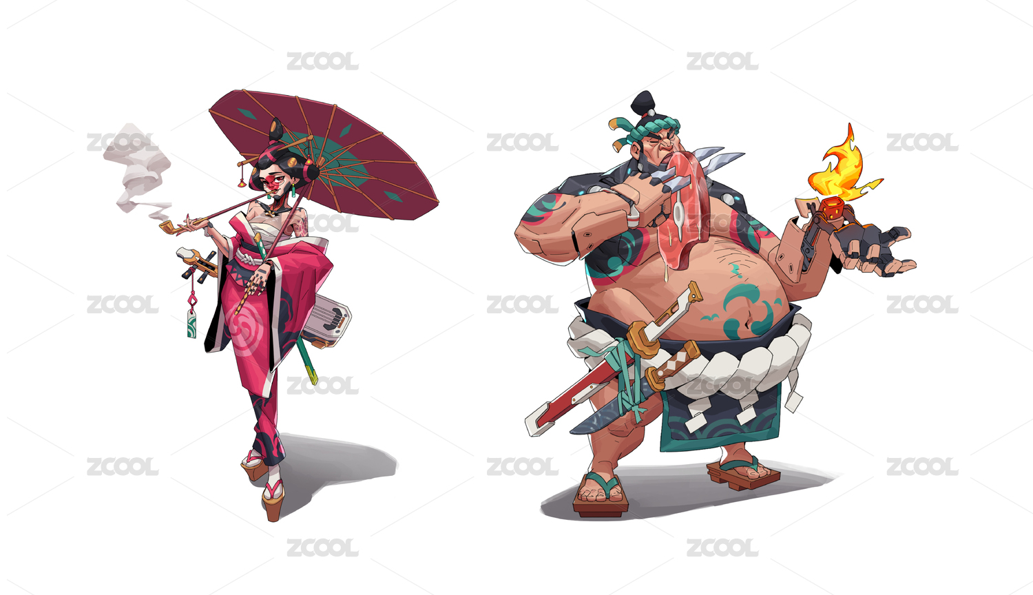 日本相扑选手和樱花背景