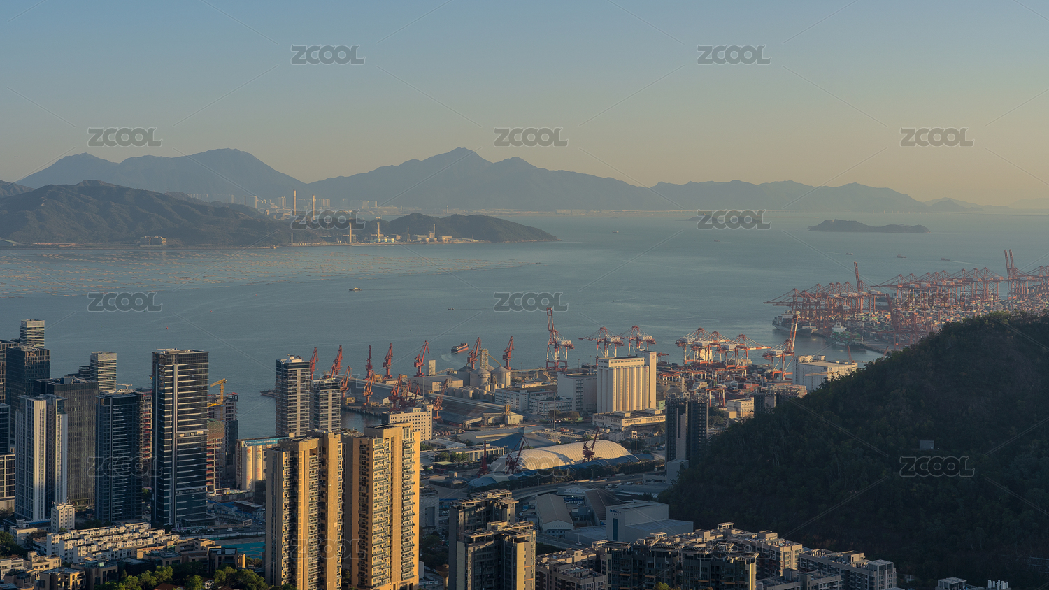 深圳滨海码头港口繁忙海运高视角