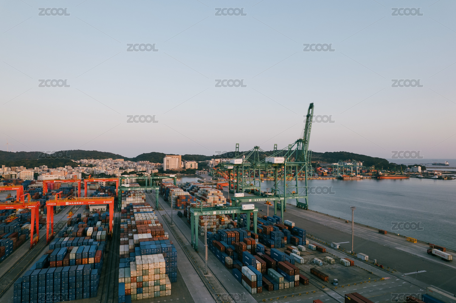 上海洋山港码头集装箱阵列浩大,运输繁忙