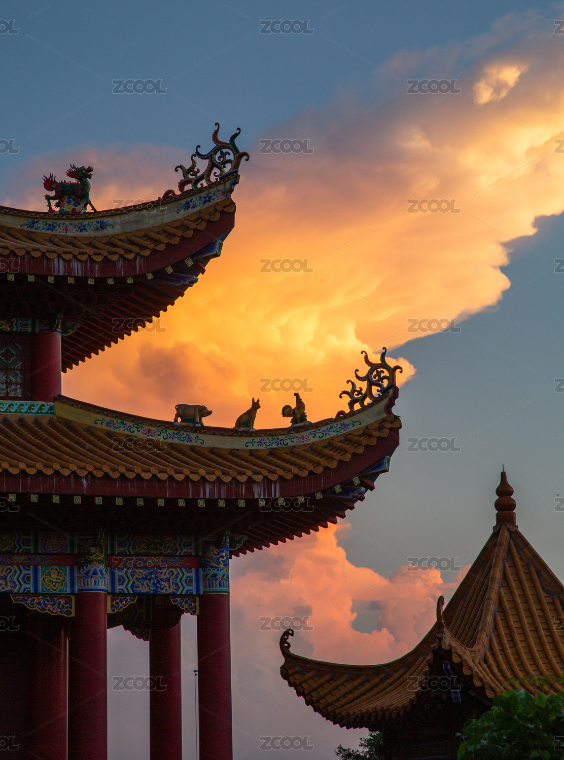 广东珠海情侣路爱情邮局灯塔与漫天彩云