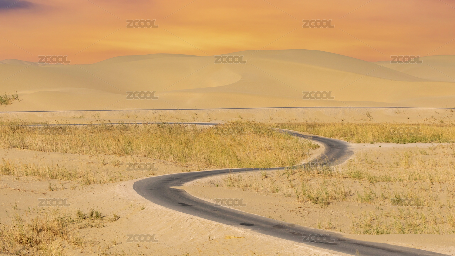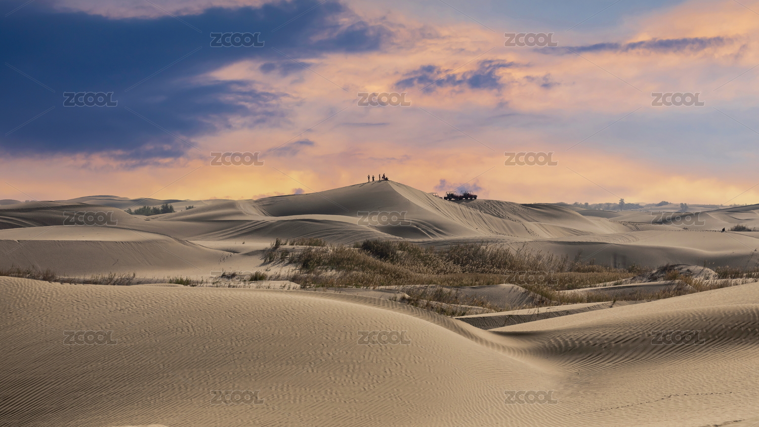 中国新疆罗布人村寨天空彩云衬托沙漠