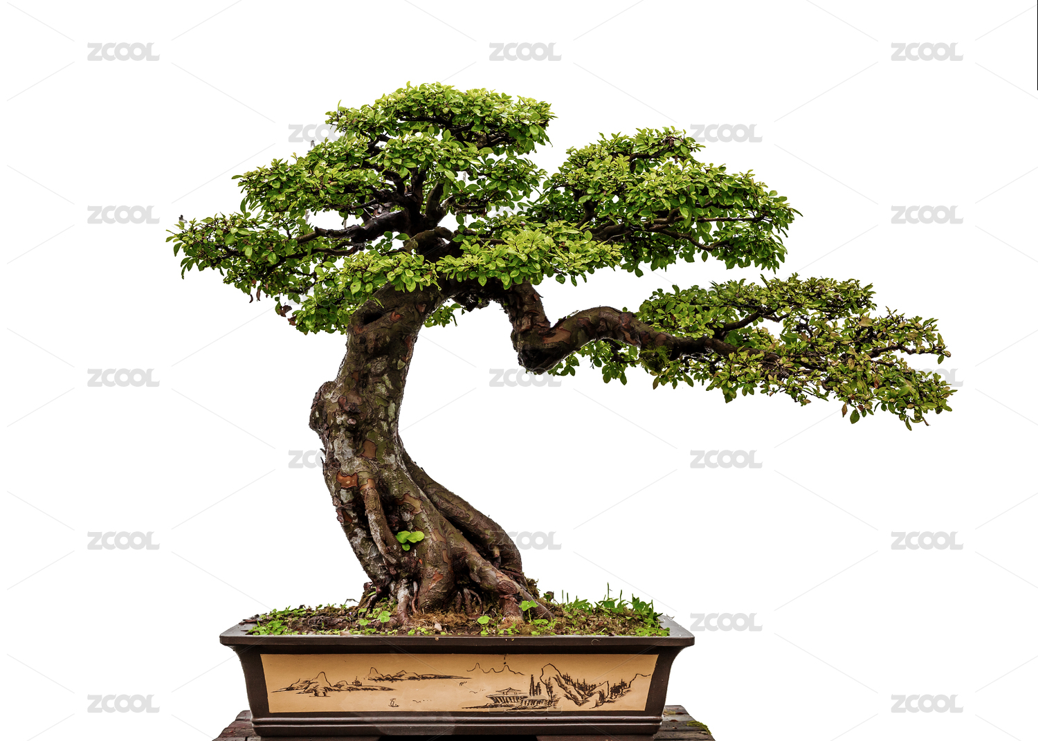 中国盆景艺术,紫檀树盆景在白色背景