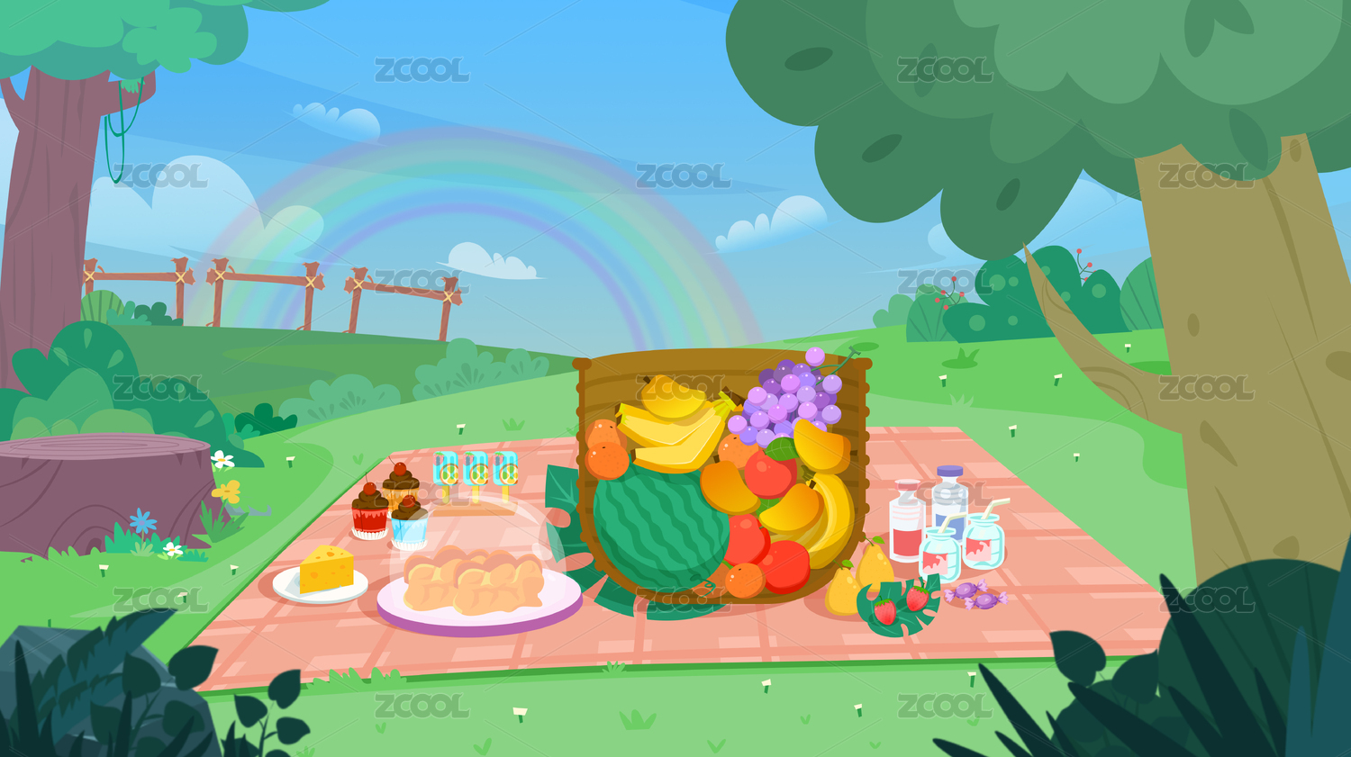 儿插公园场景野餐矢量插画