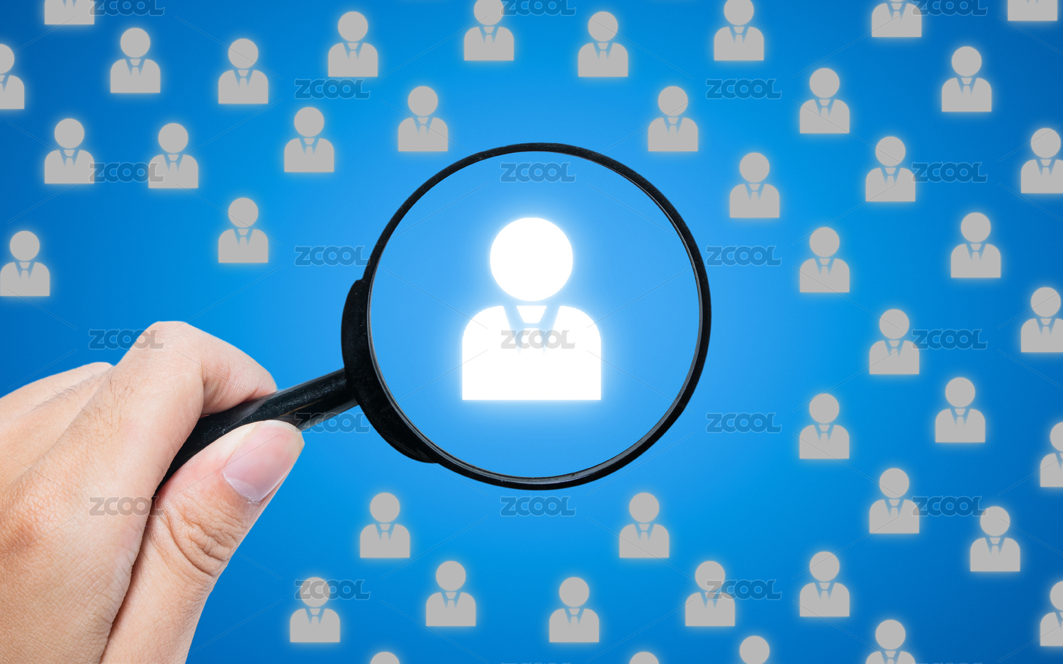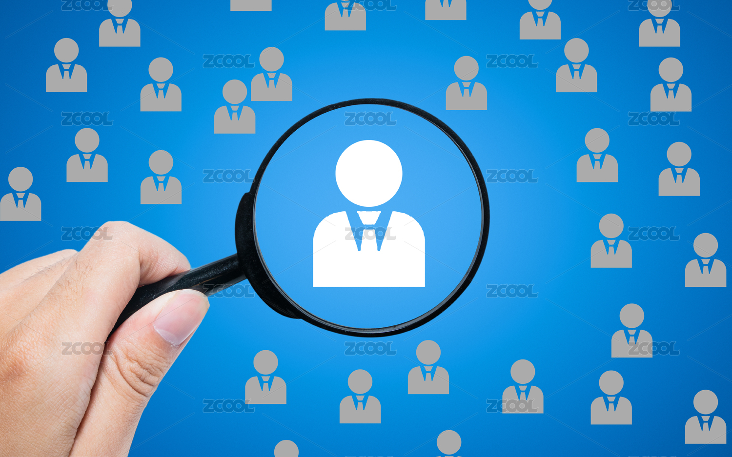 放大镜寻找杰出独特出众的人才招聘面试找工作HR面试官概念