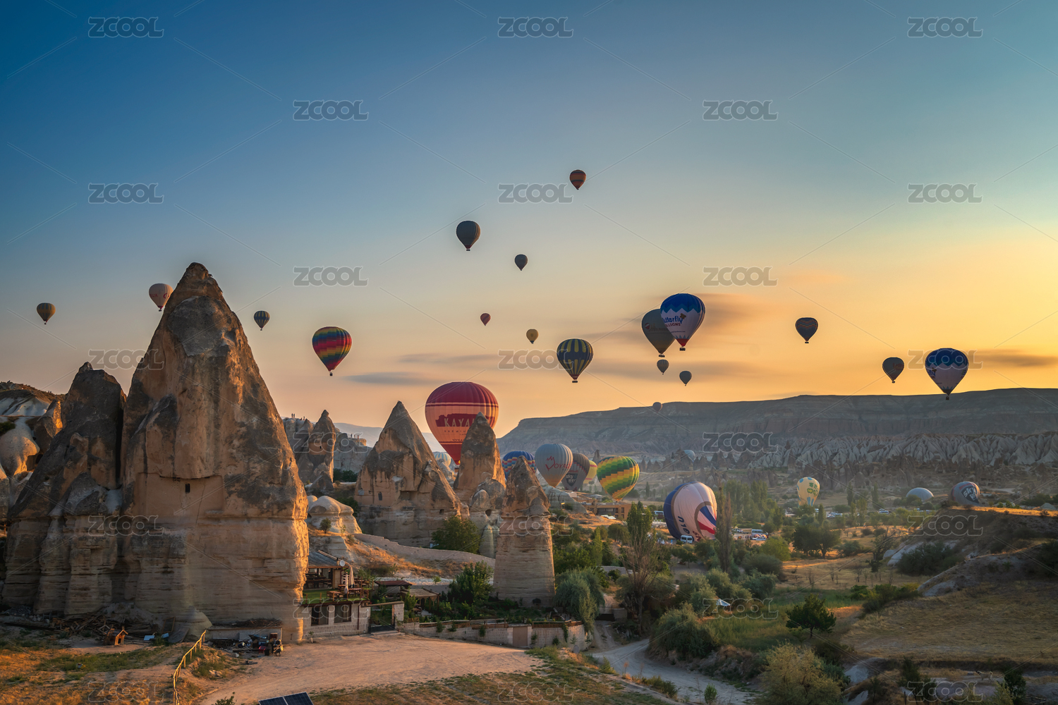 旭日下卡帕多西亚热独特的地质地貌和气球