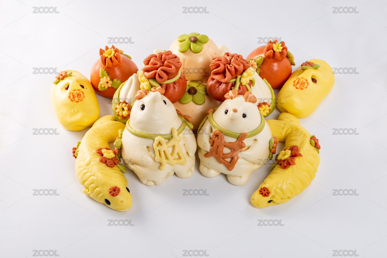 特色面食红糖馒头葱油花卷摆放在桌面上