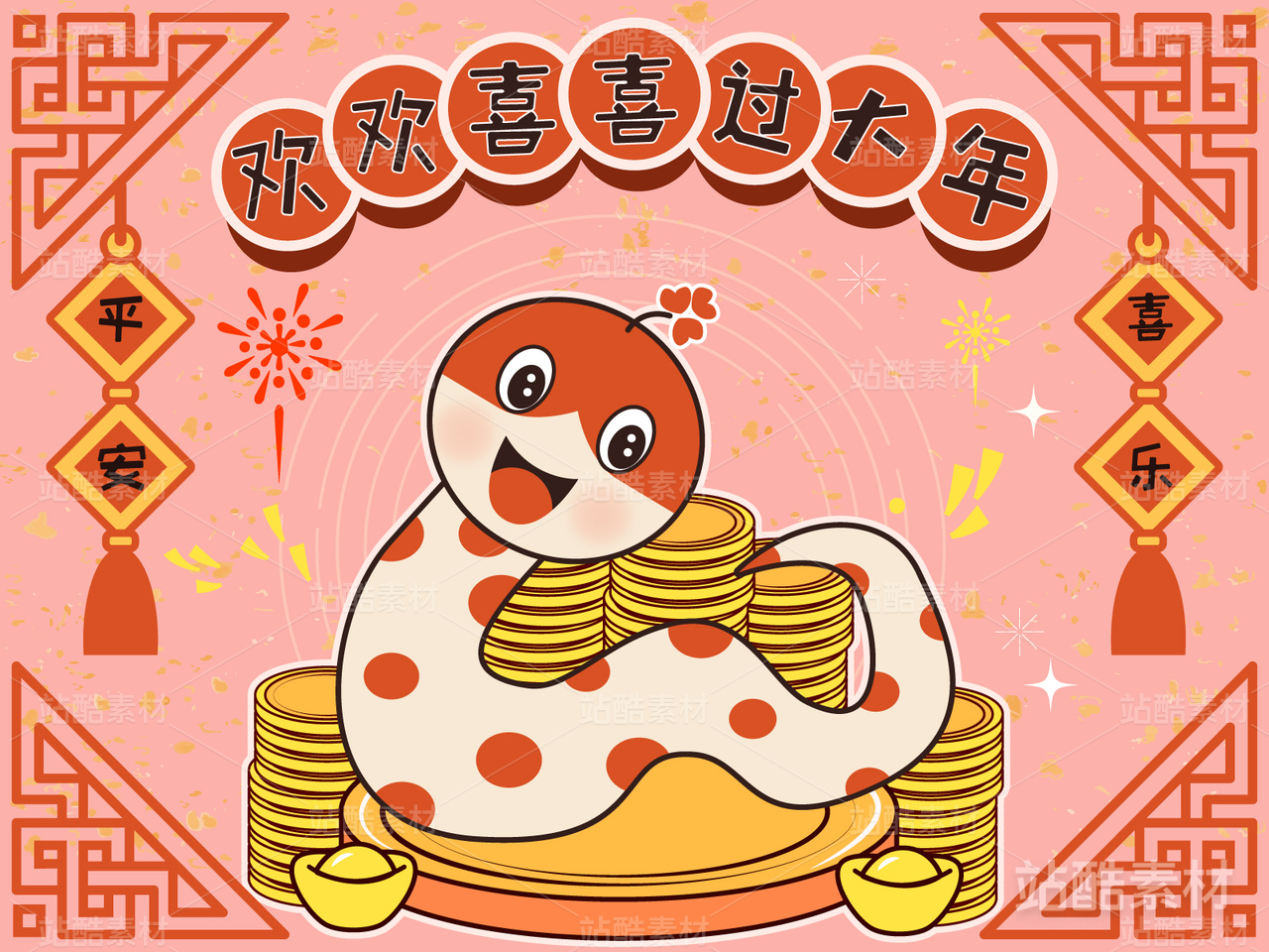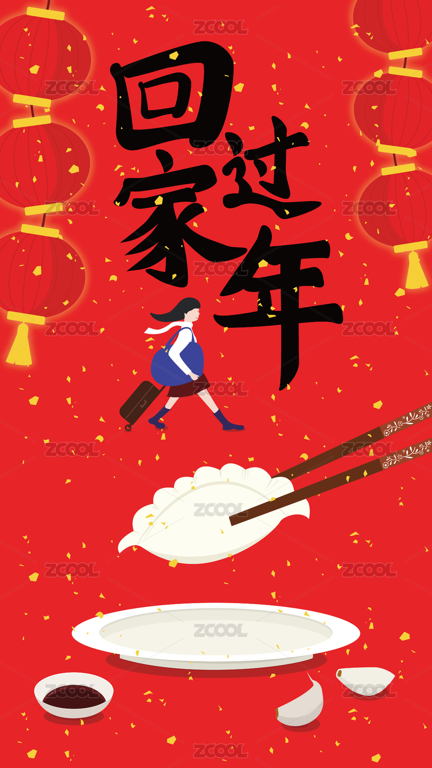 卡通2020鼠年家人团聚团圆新年春节过年背景矢量插画