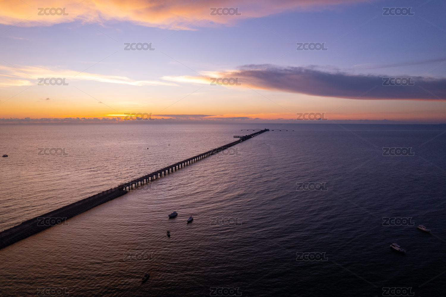 夏天北海涠洲岛蓝桥海边晚霞