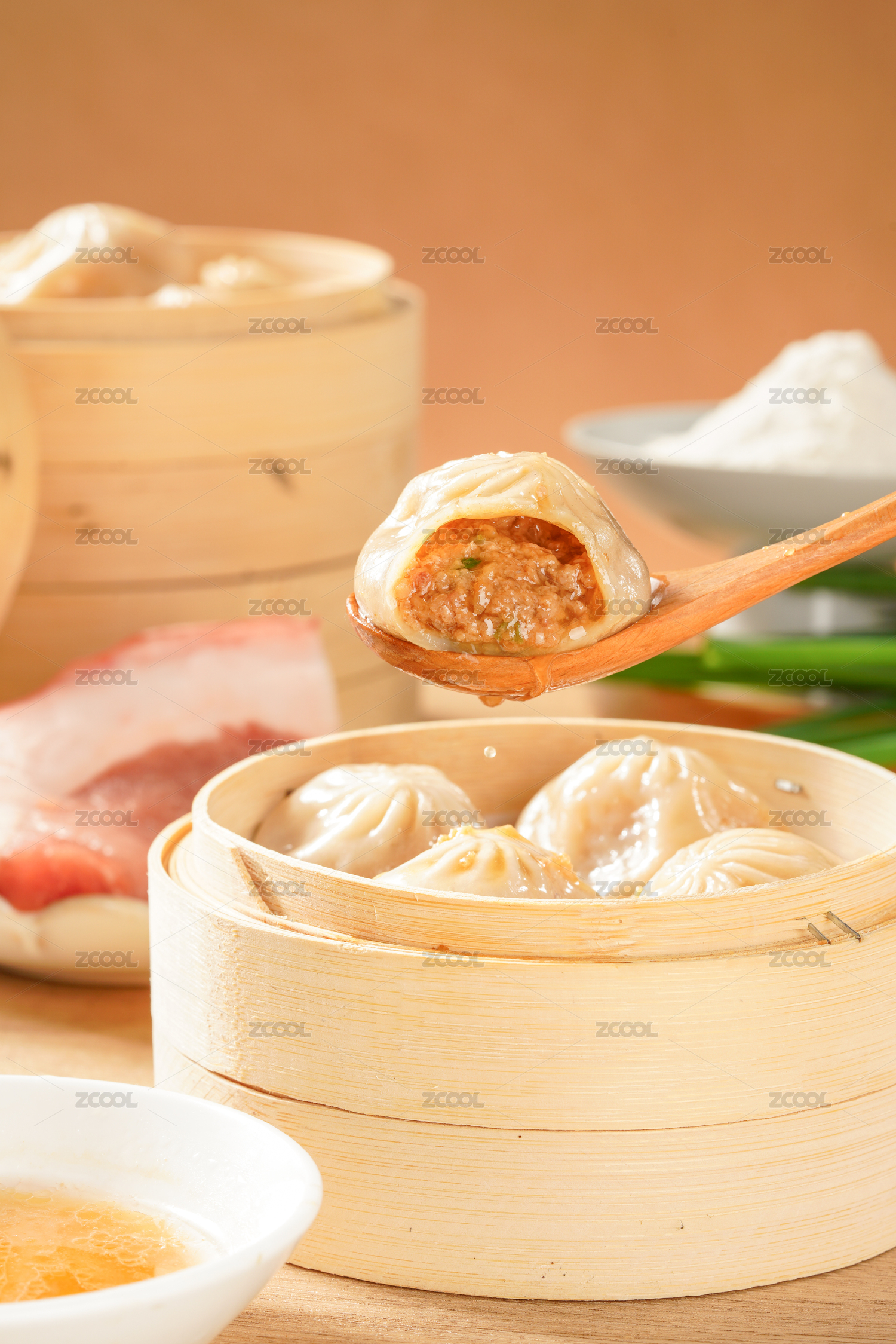 蒸笼里的传统小吃汤包