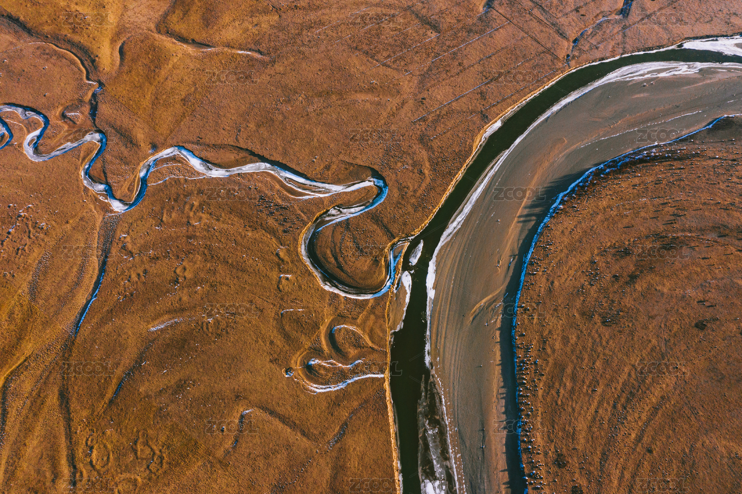 中国四川阿坝藏族羌族自治州红原冬季航拍图