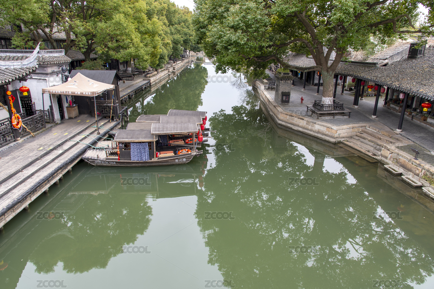 中国浙江嘉兴嘉善西塘古镇手摇船码头