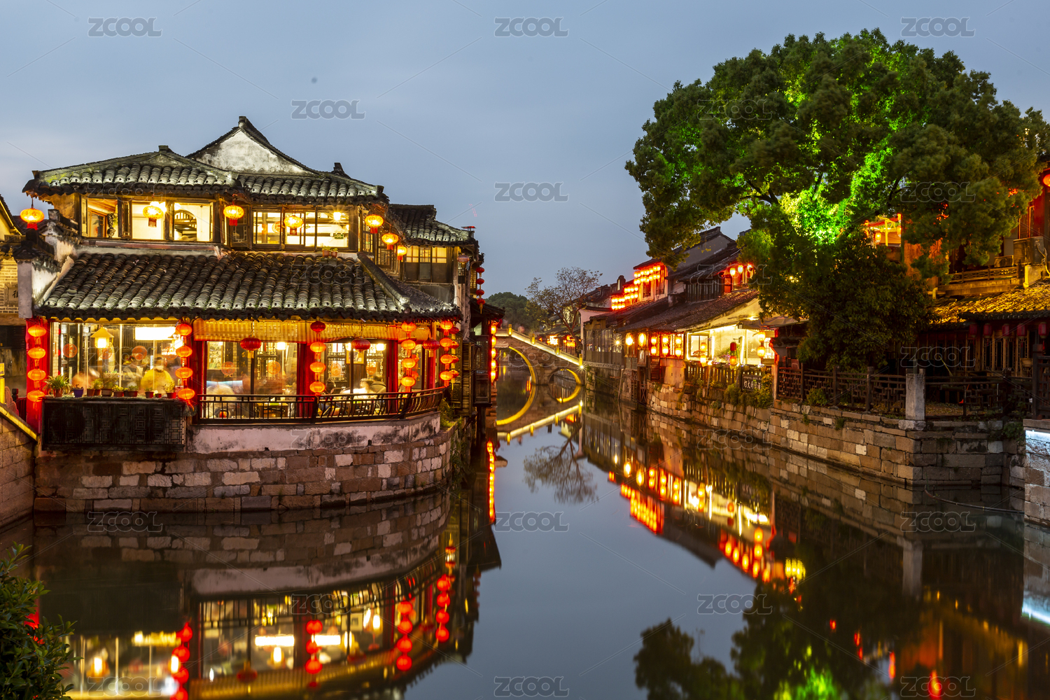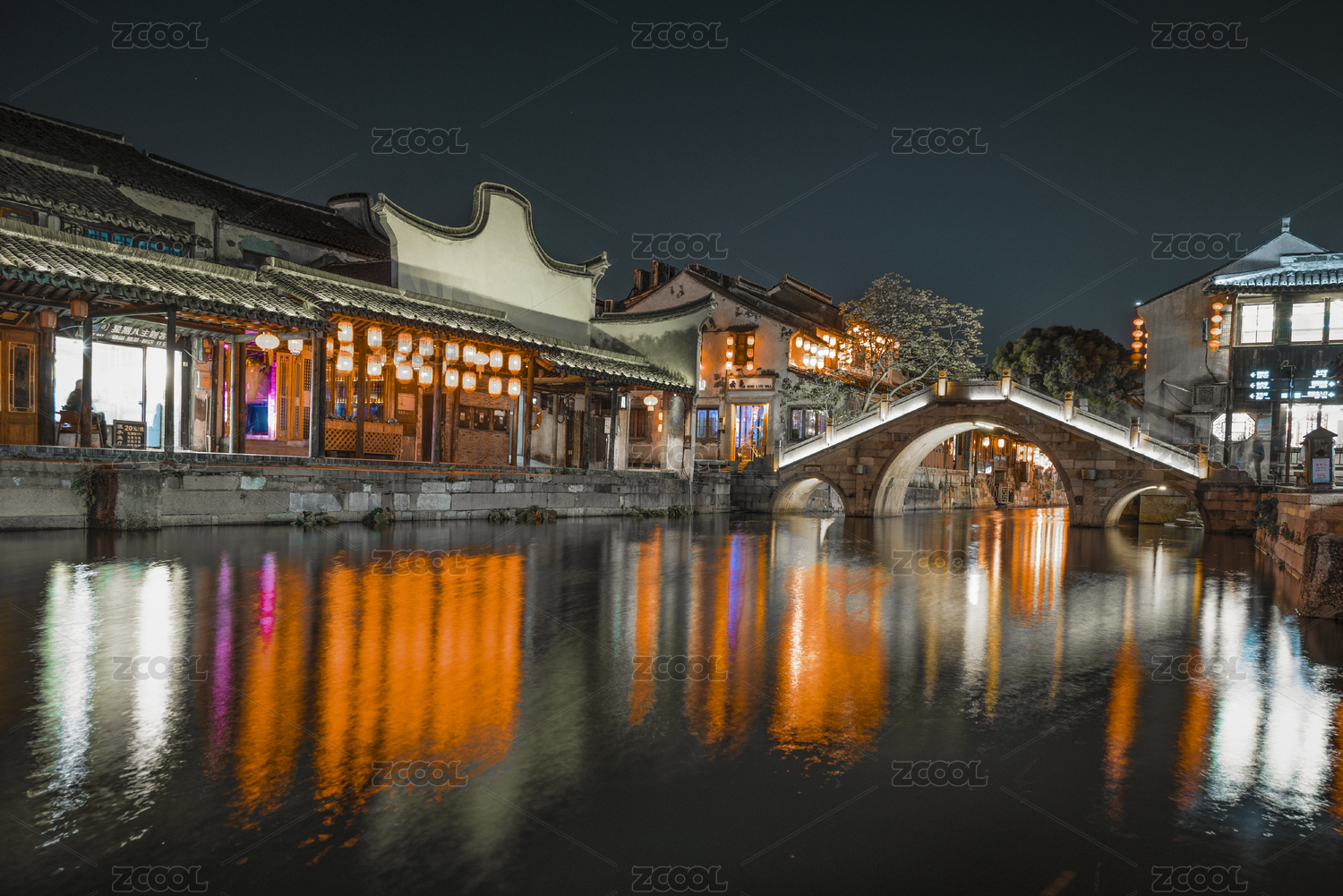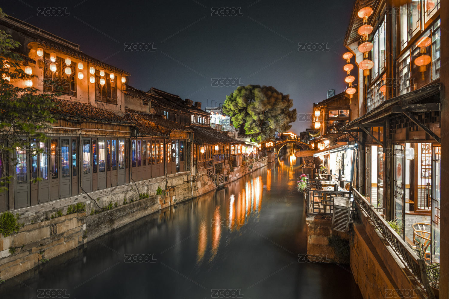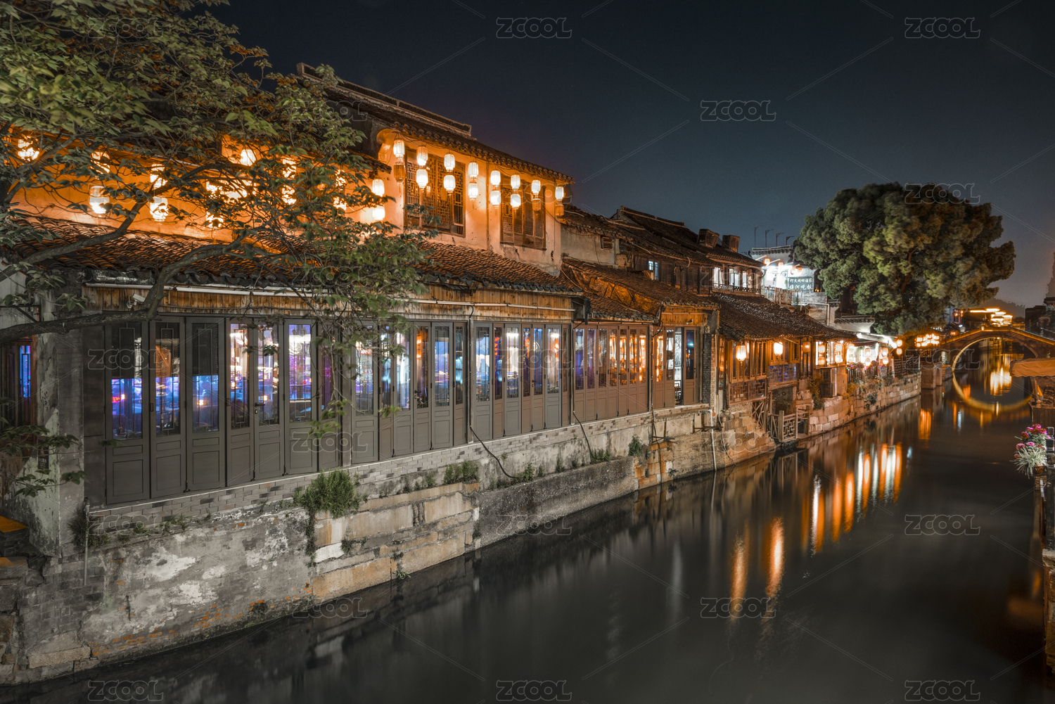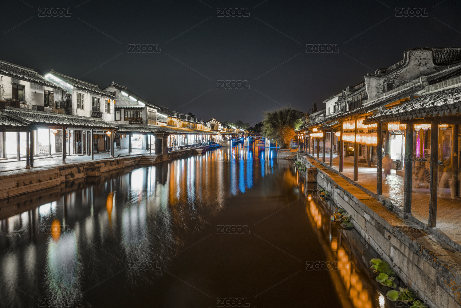 浙江嘉兴西塘古镇夜景