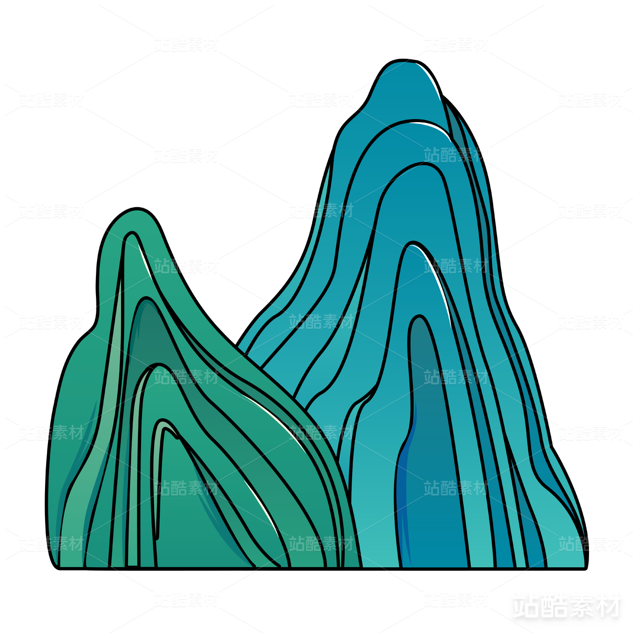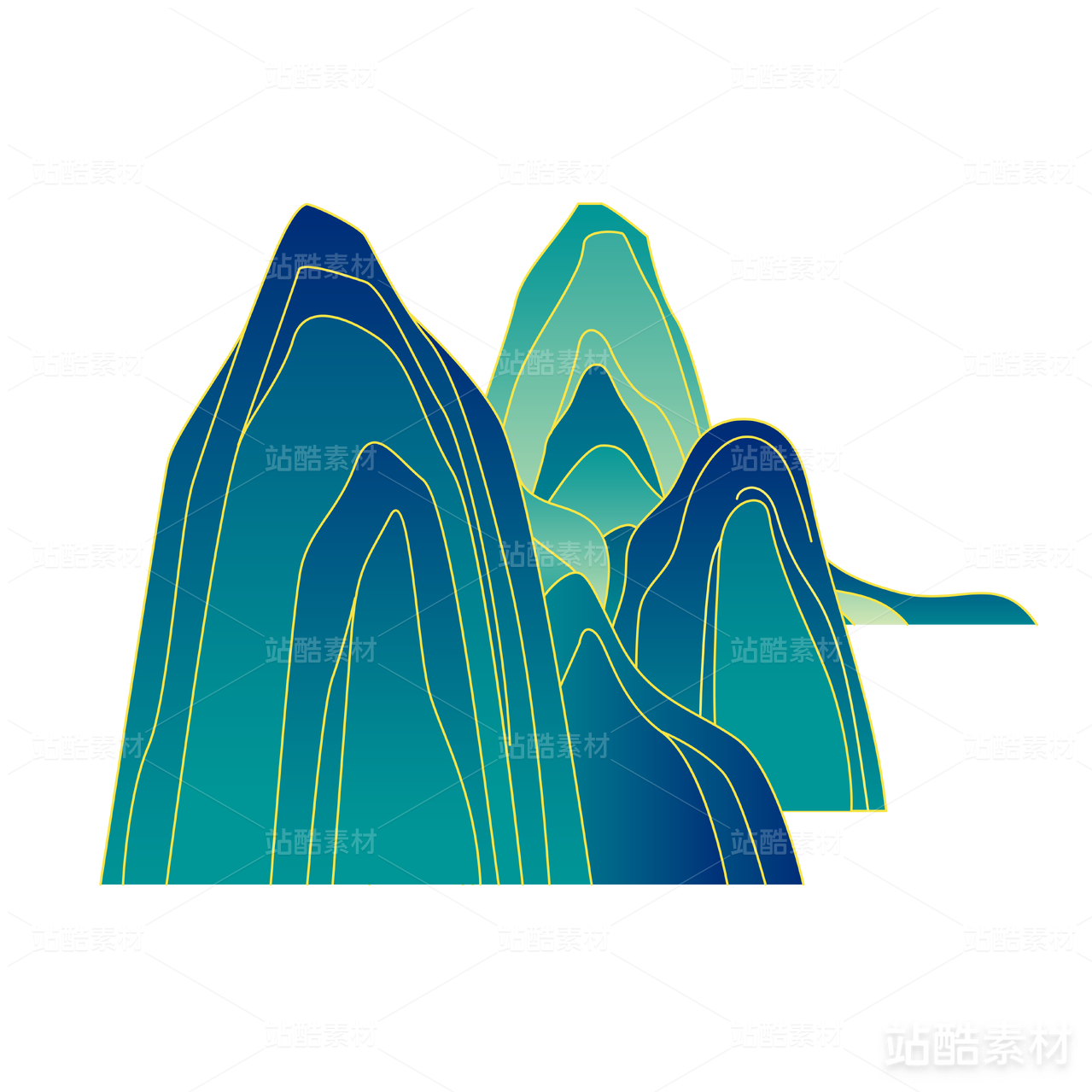 国潮风山脉青山插画元素