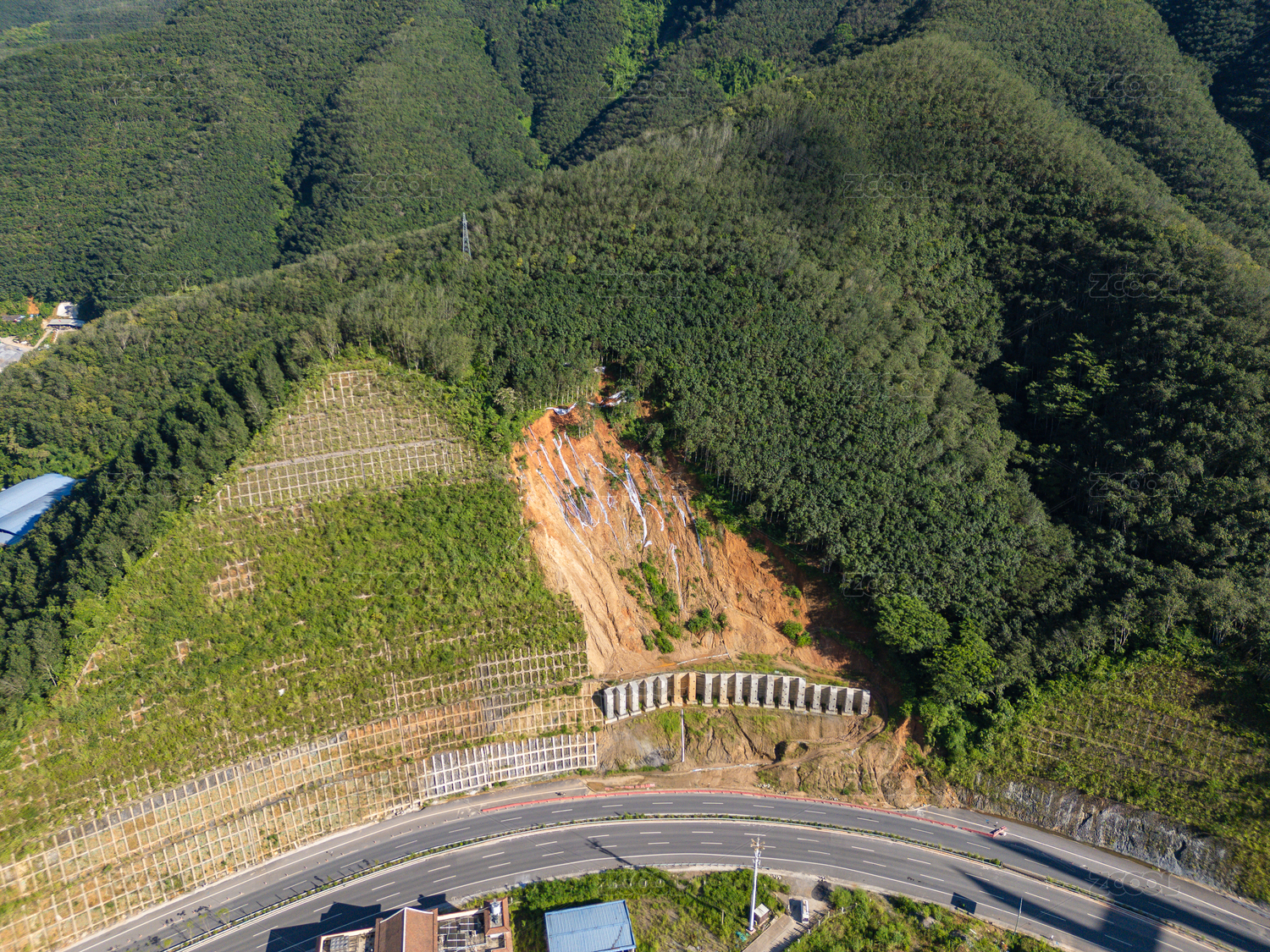 航拍青山公路自然风光