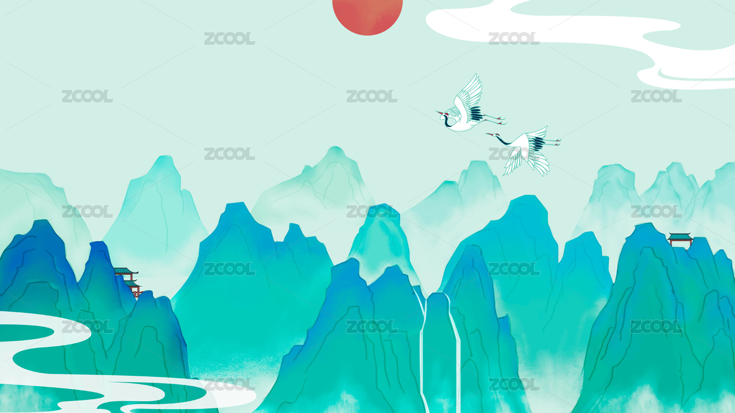 青山祥云插画