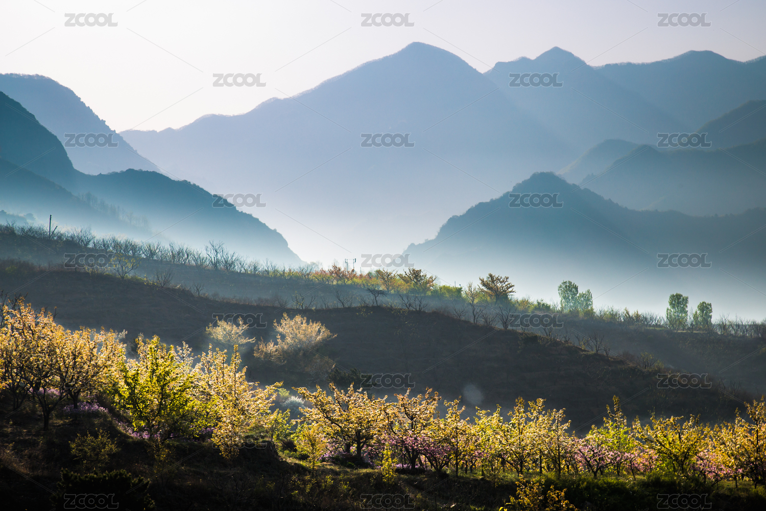 青山晨雾主题
