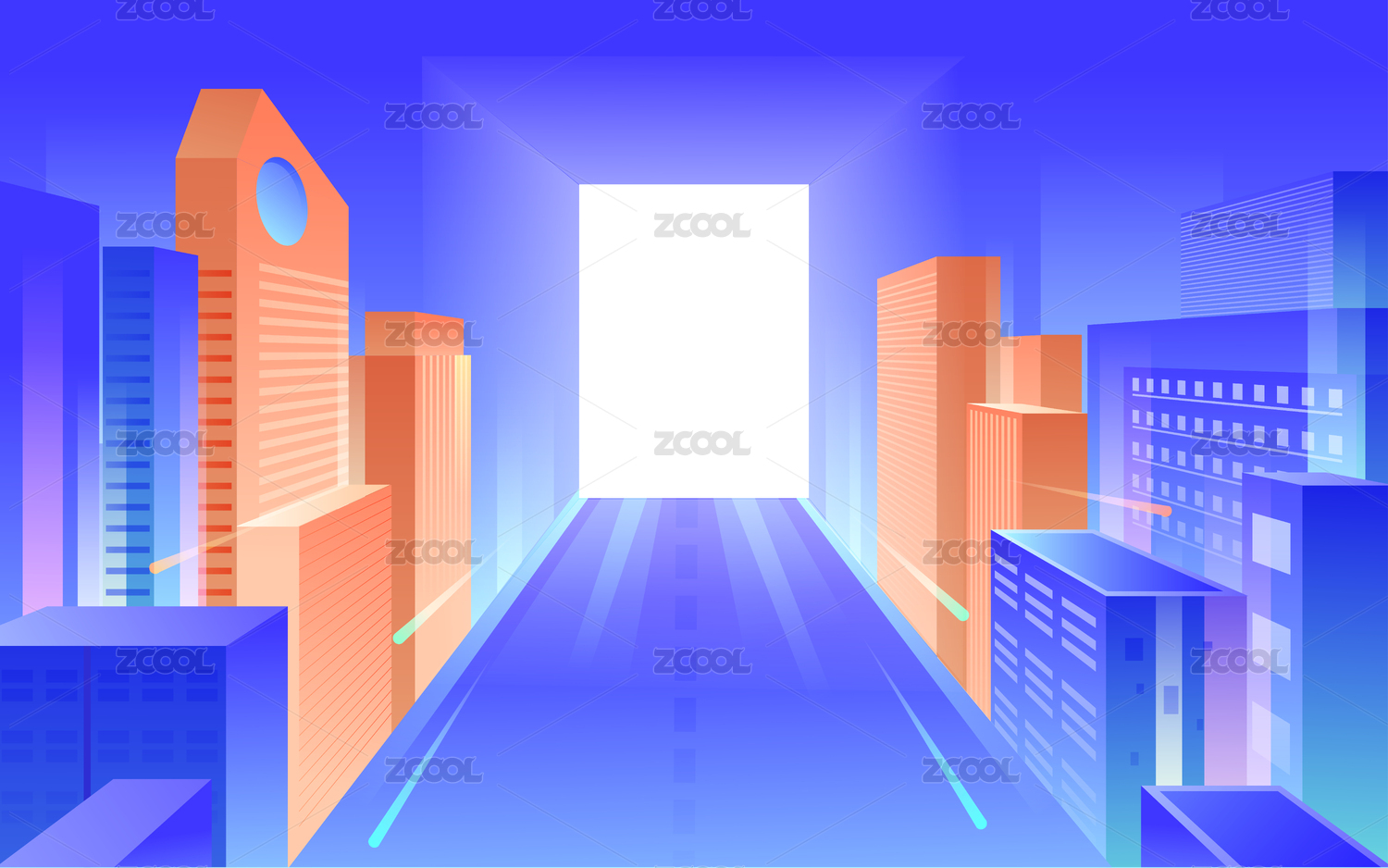 立体城市景观建筑摩天大楼道路出口矢量插画