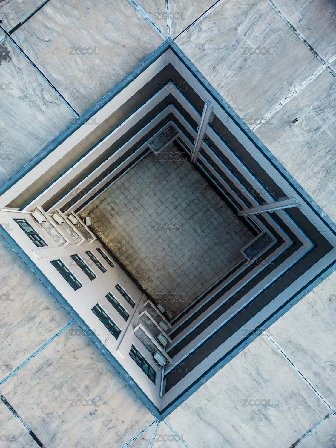 航拍学校的楼道天井