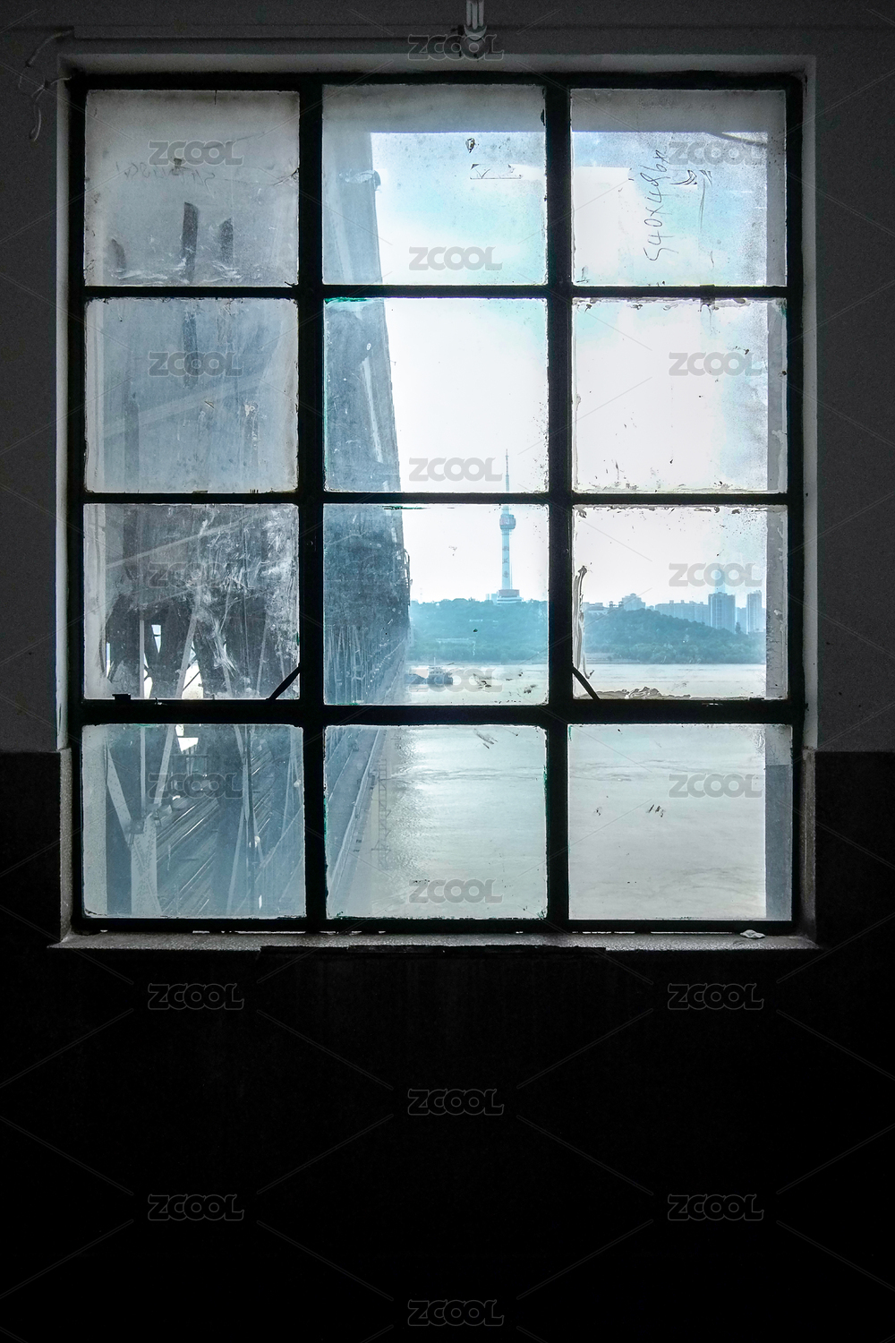 在中国武汉长江大桥的楼道里看龟山电视塔