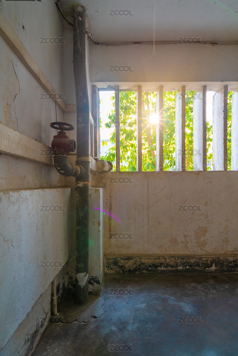 黄昏中的阳光散射在宿舍楼道中