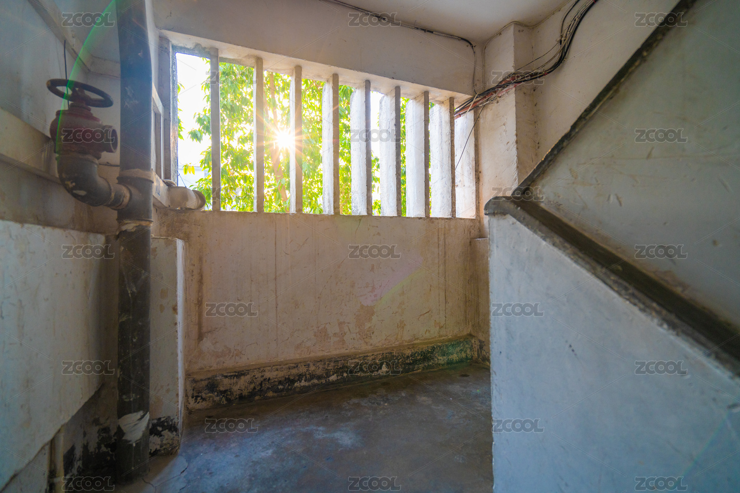 带消防设施的旧式居民楼楼道