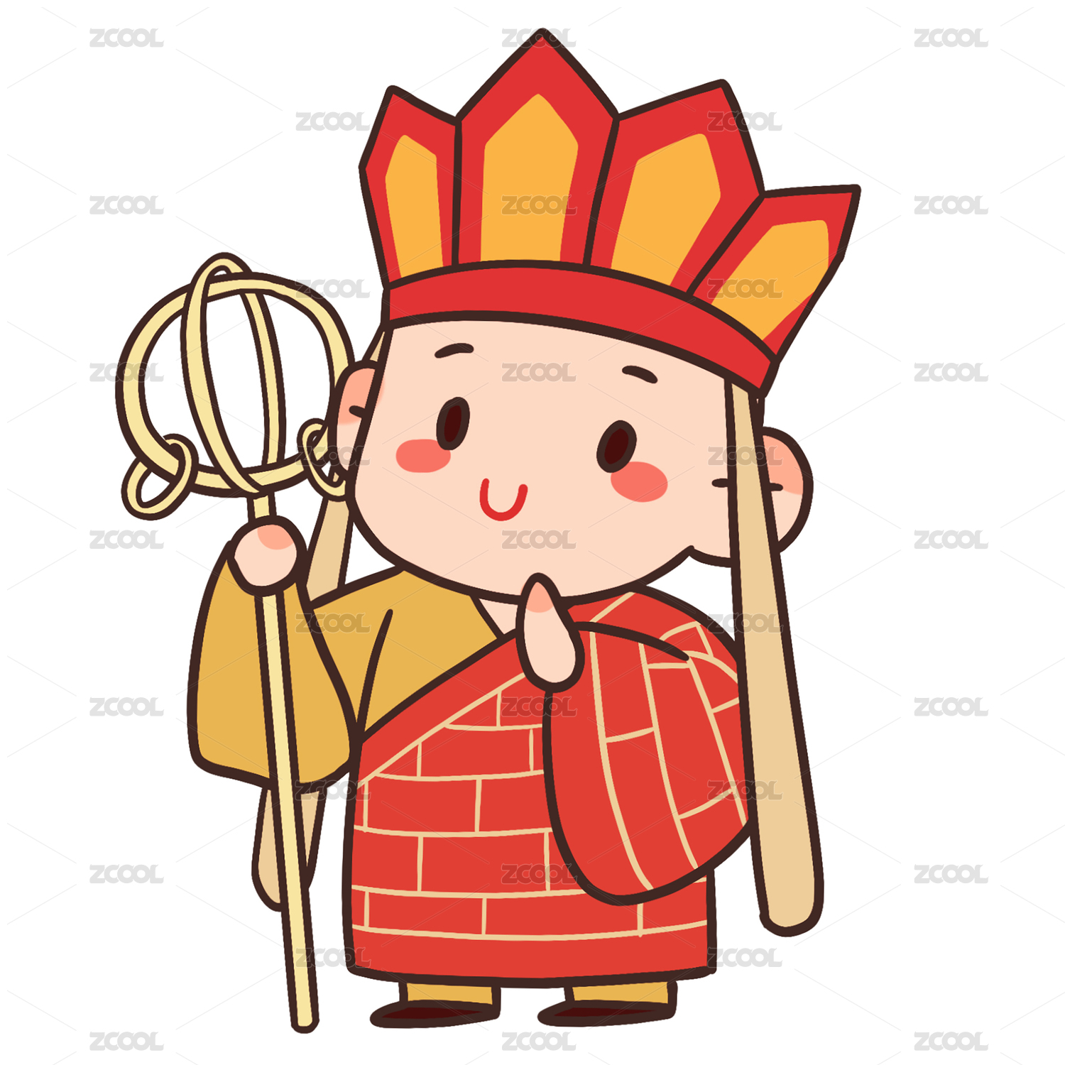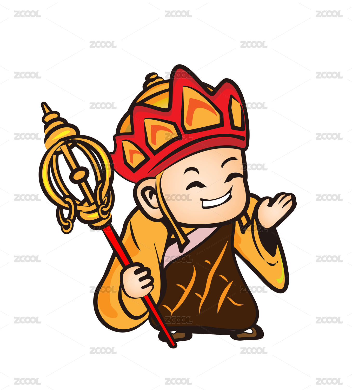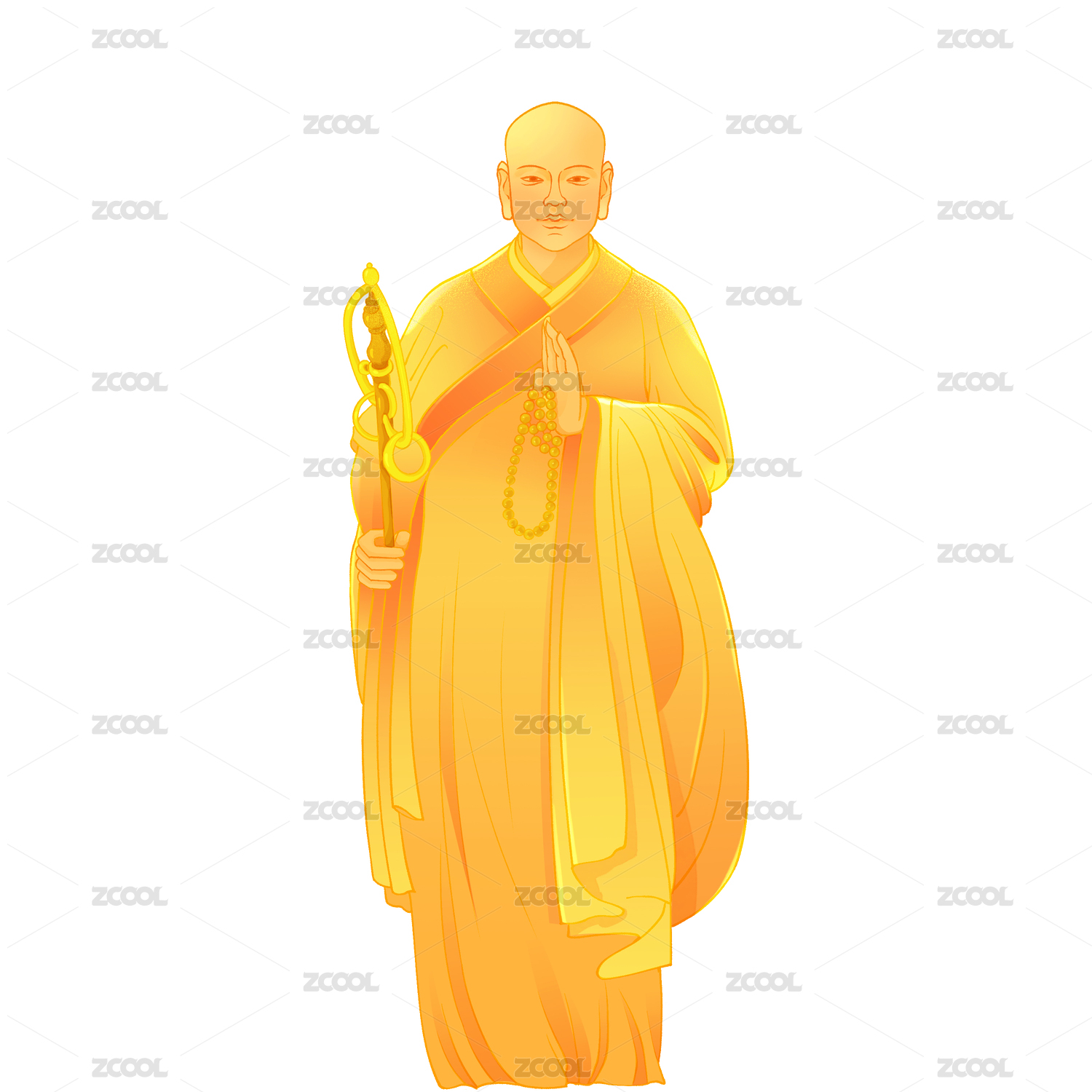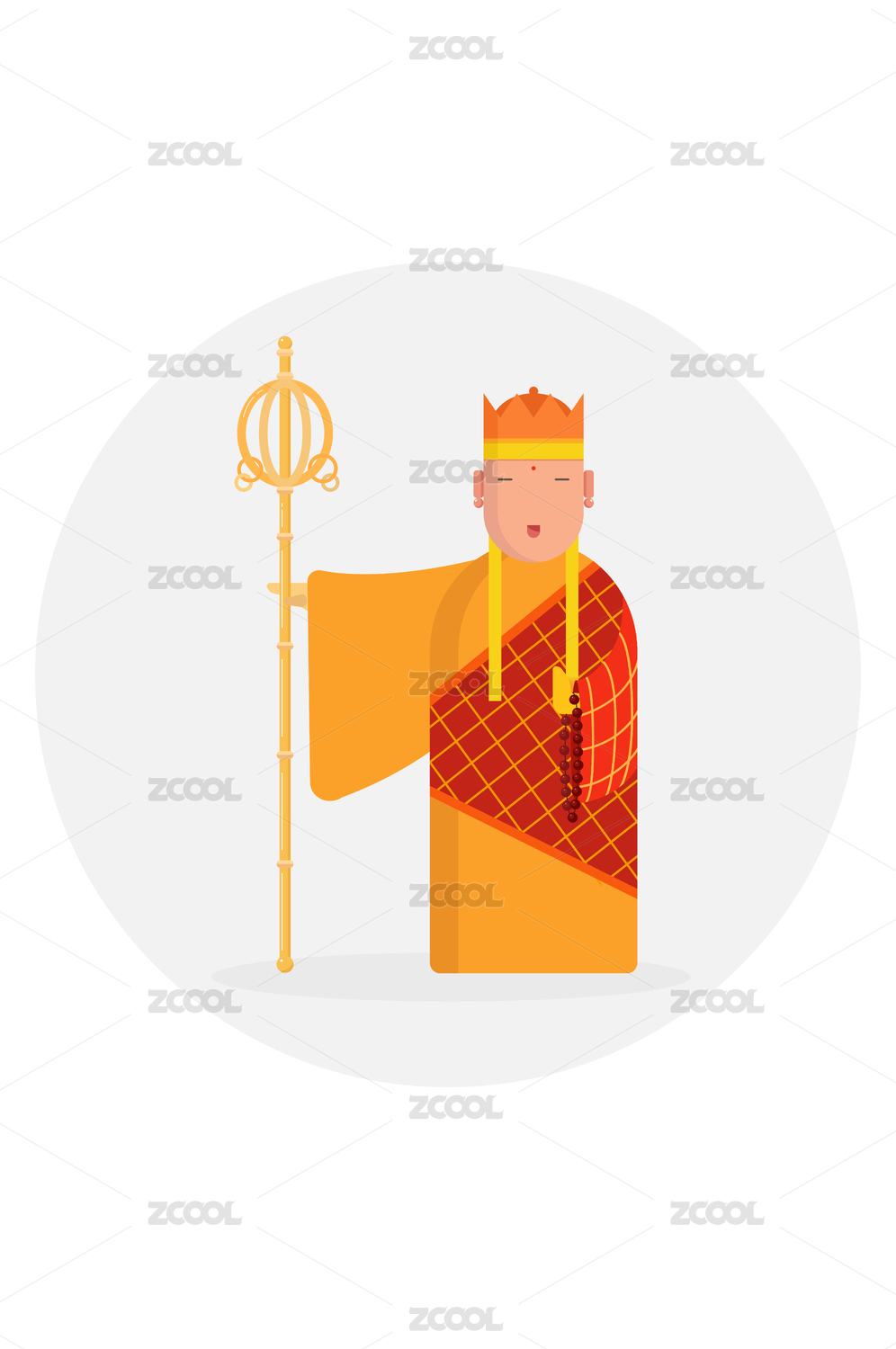 唐僧和尚可爱抽象扁平创意商业拼色矢量插画