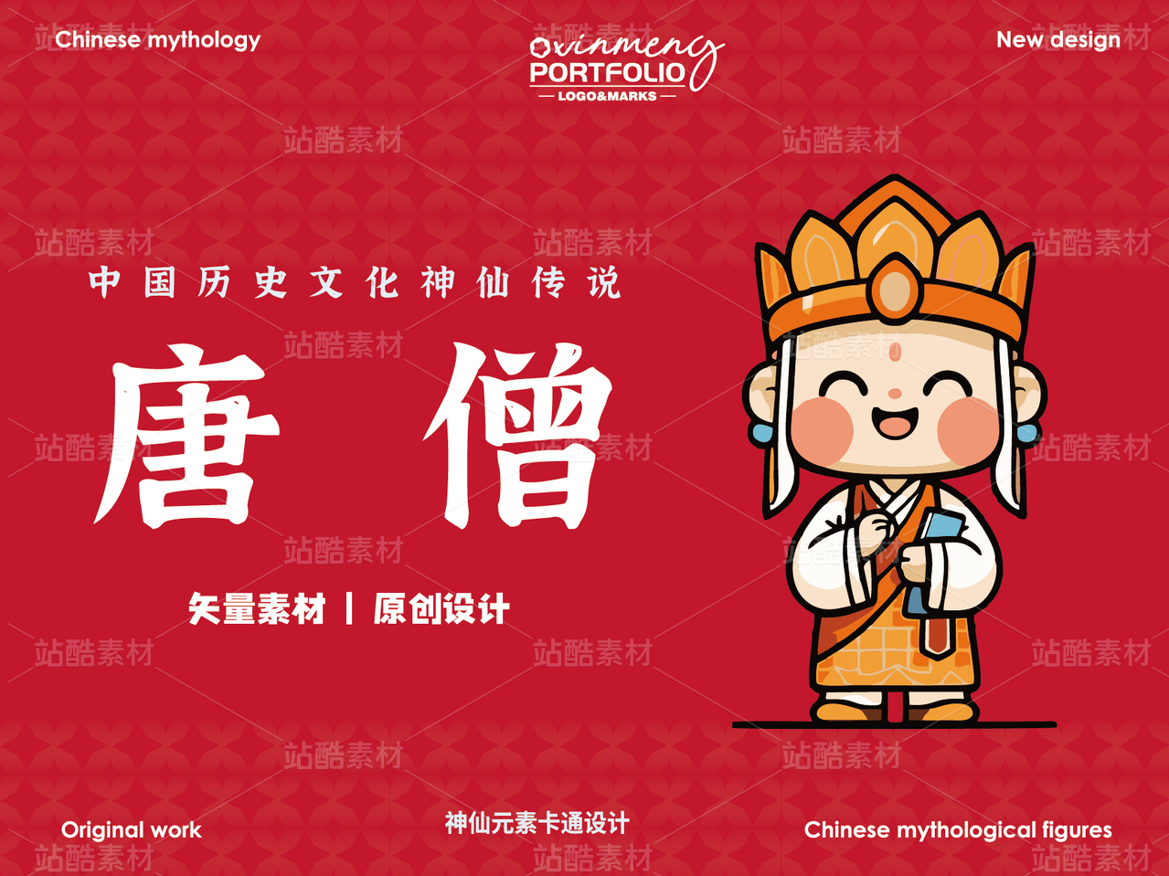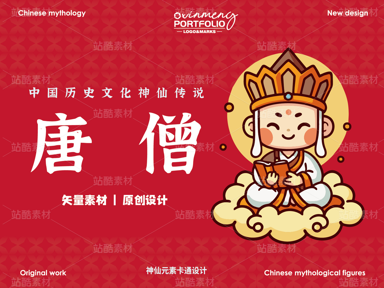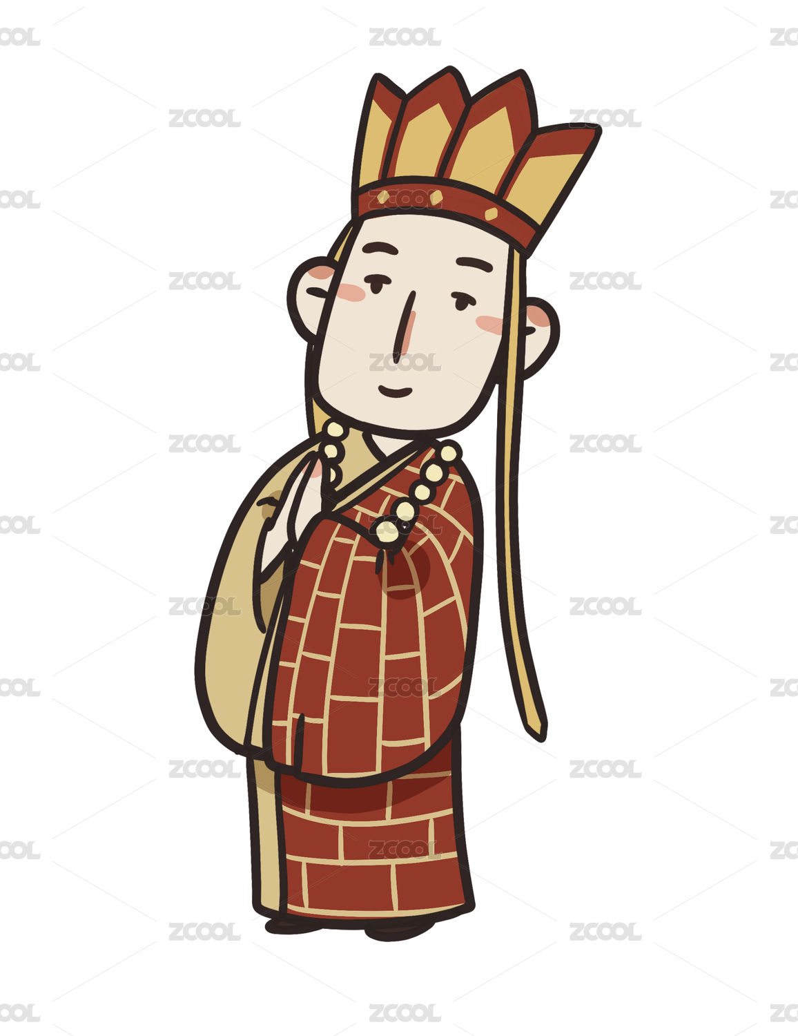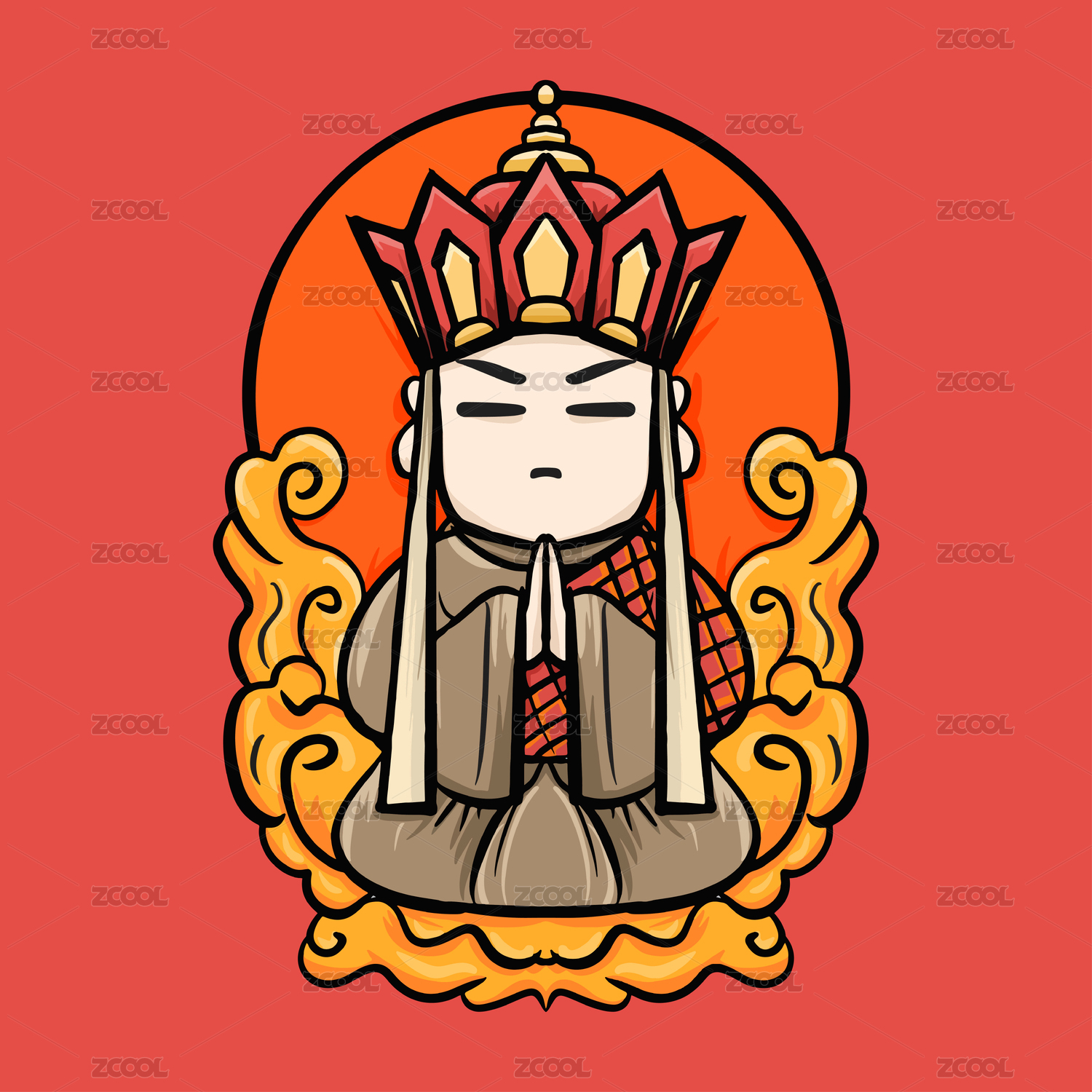 唐僧和尚可爱抽象扁平创意商业拼色矢量插画