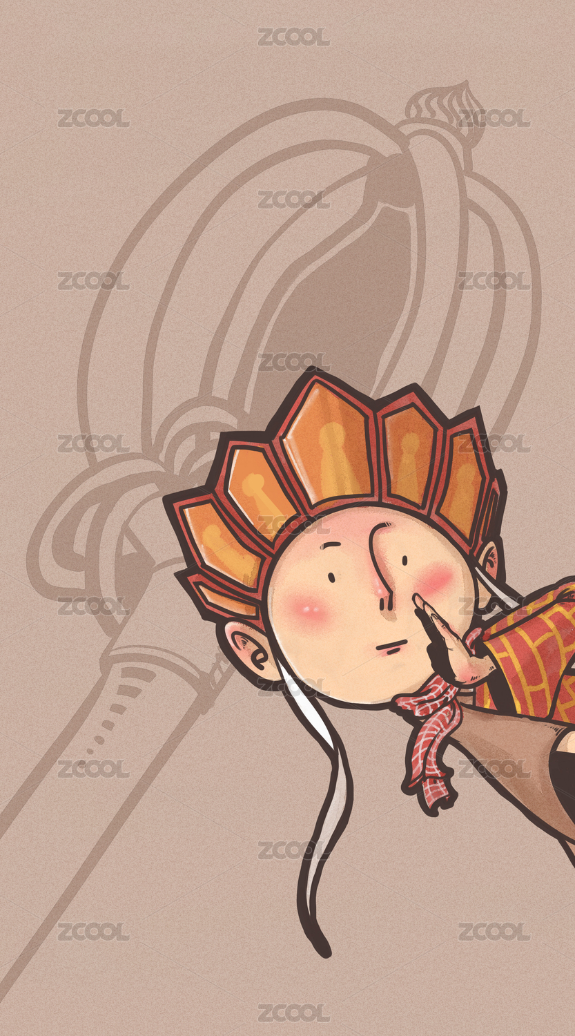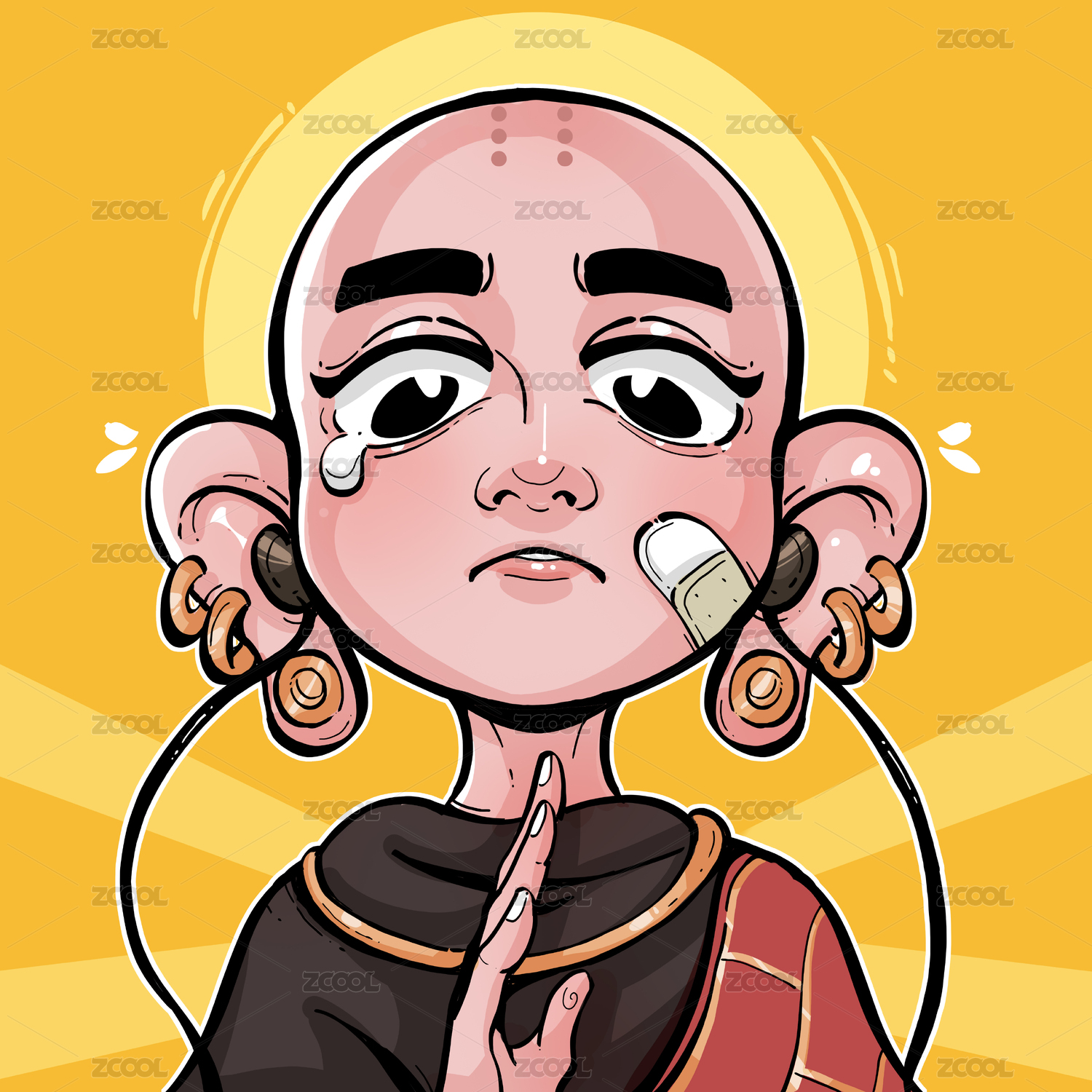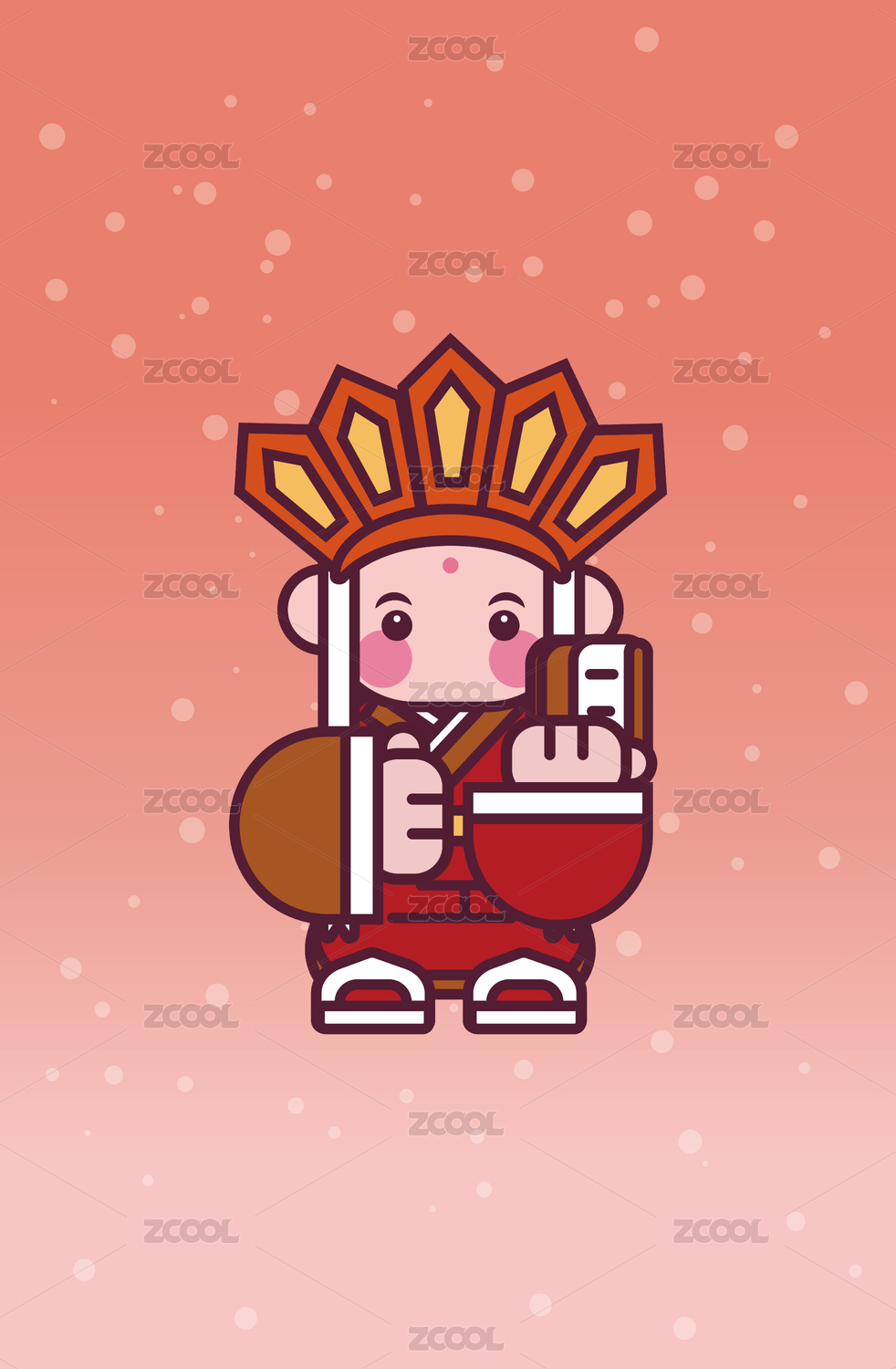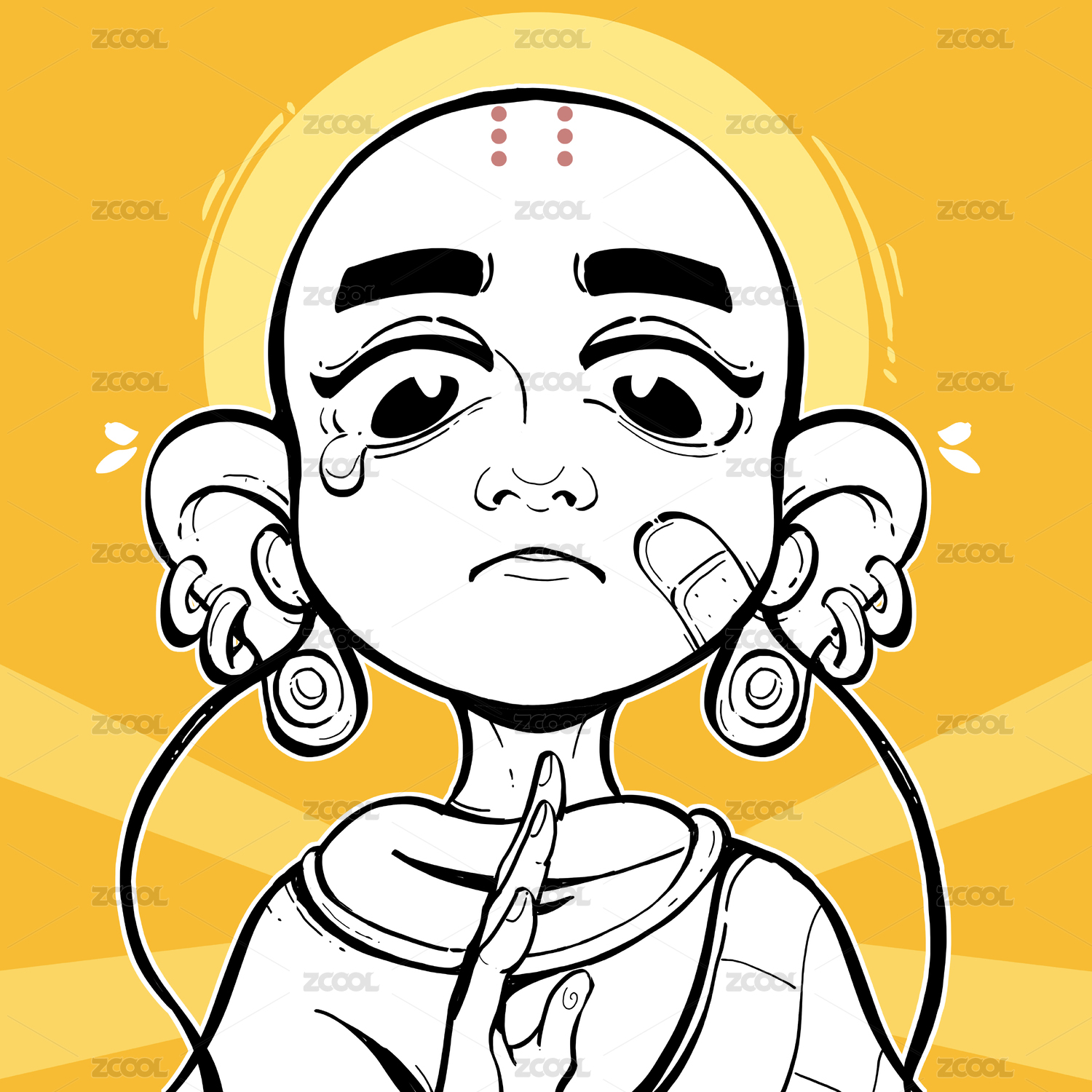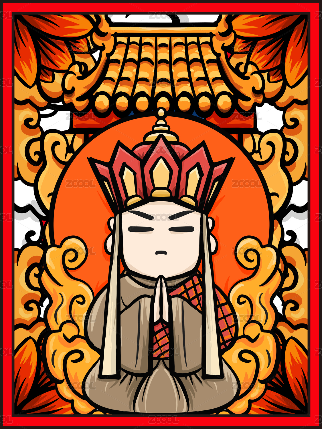 唐僧和尚可爱抽象扁平创意商业拼色矢量插画