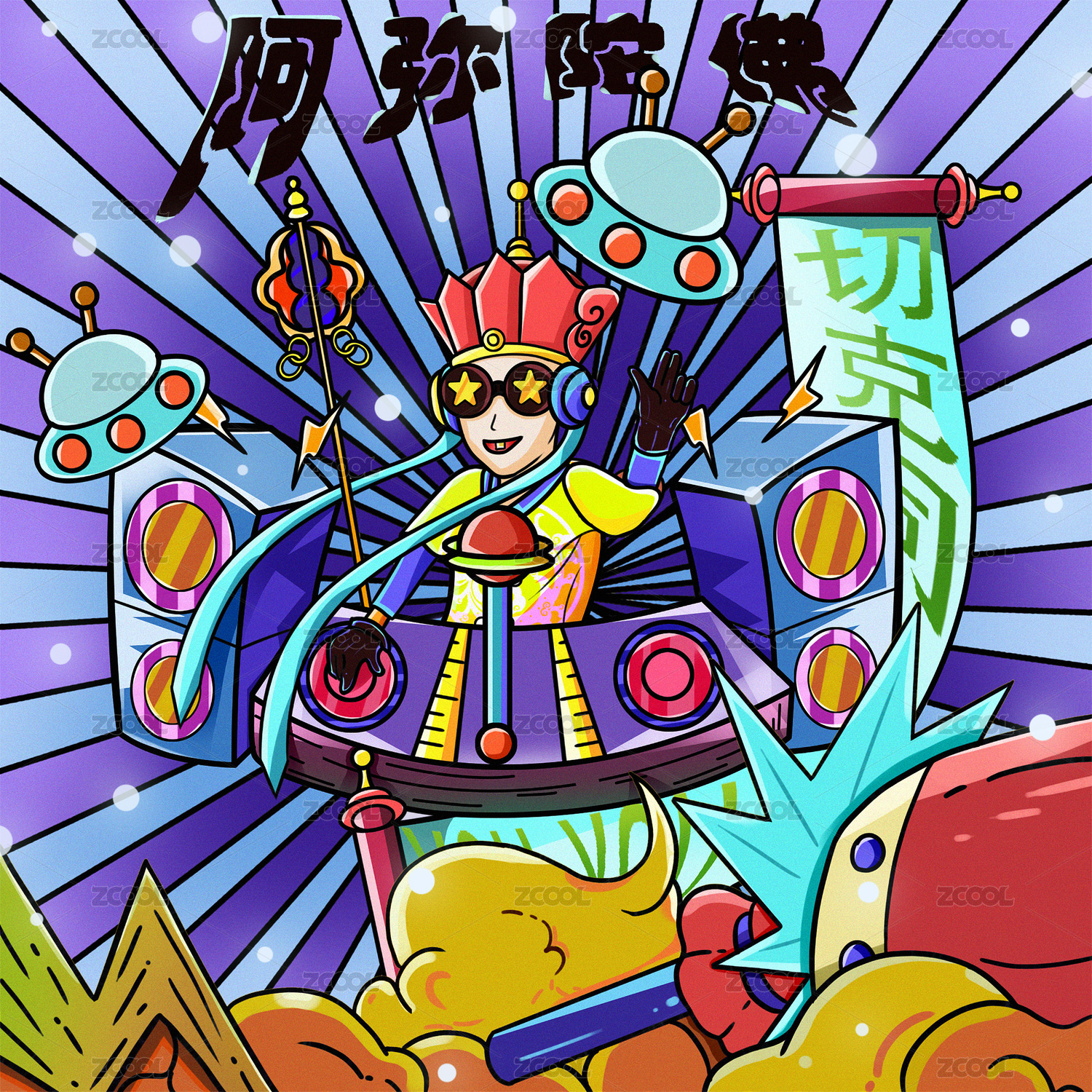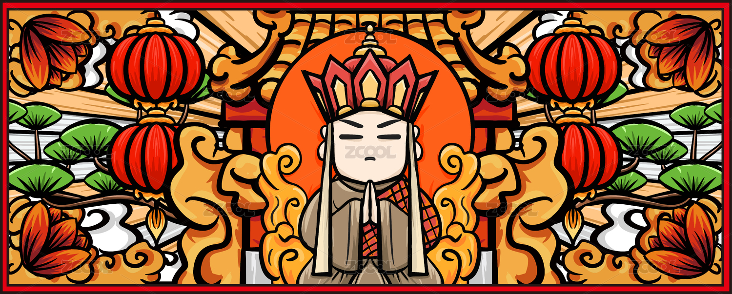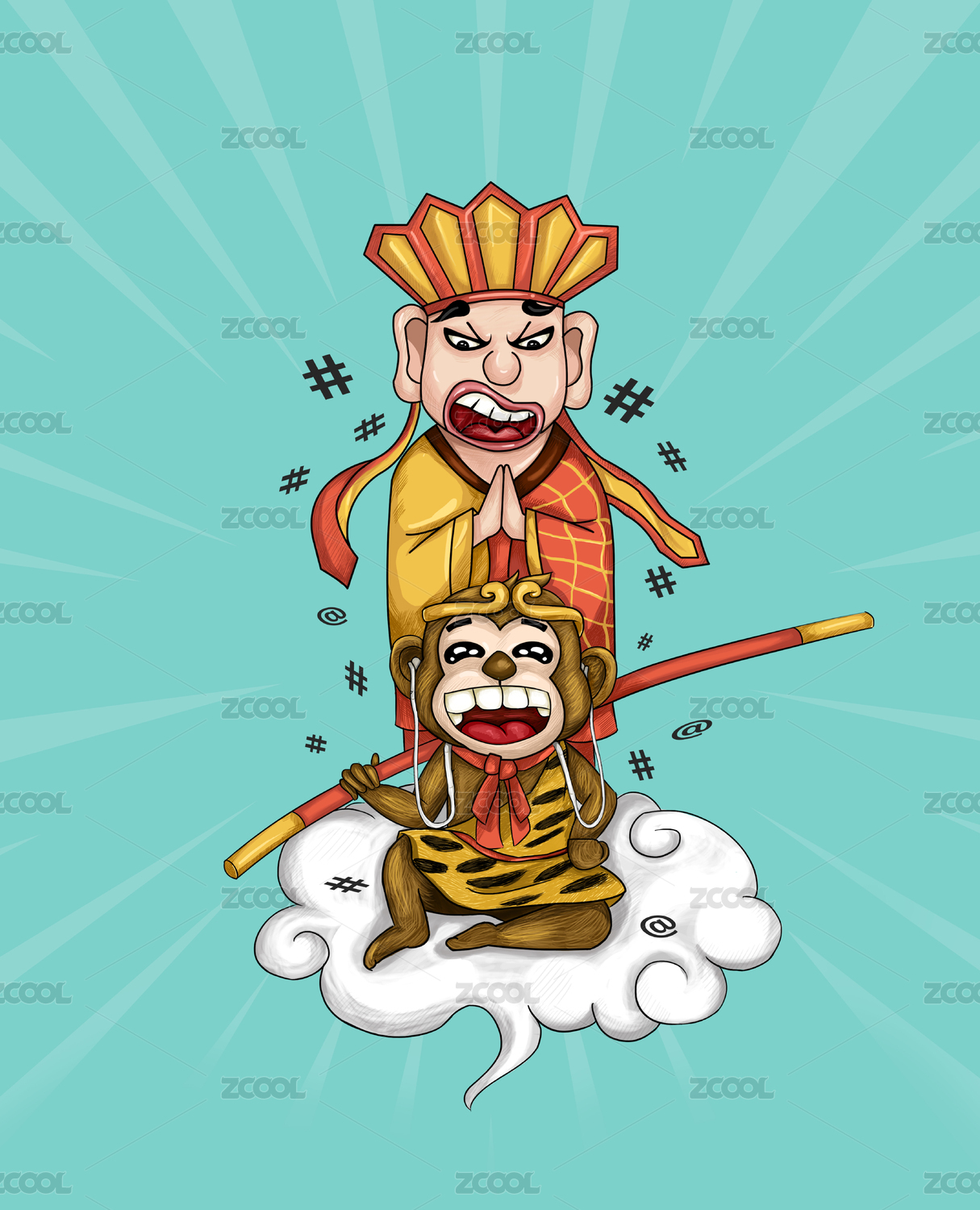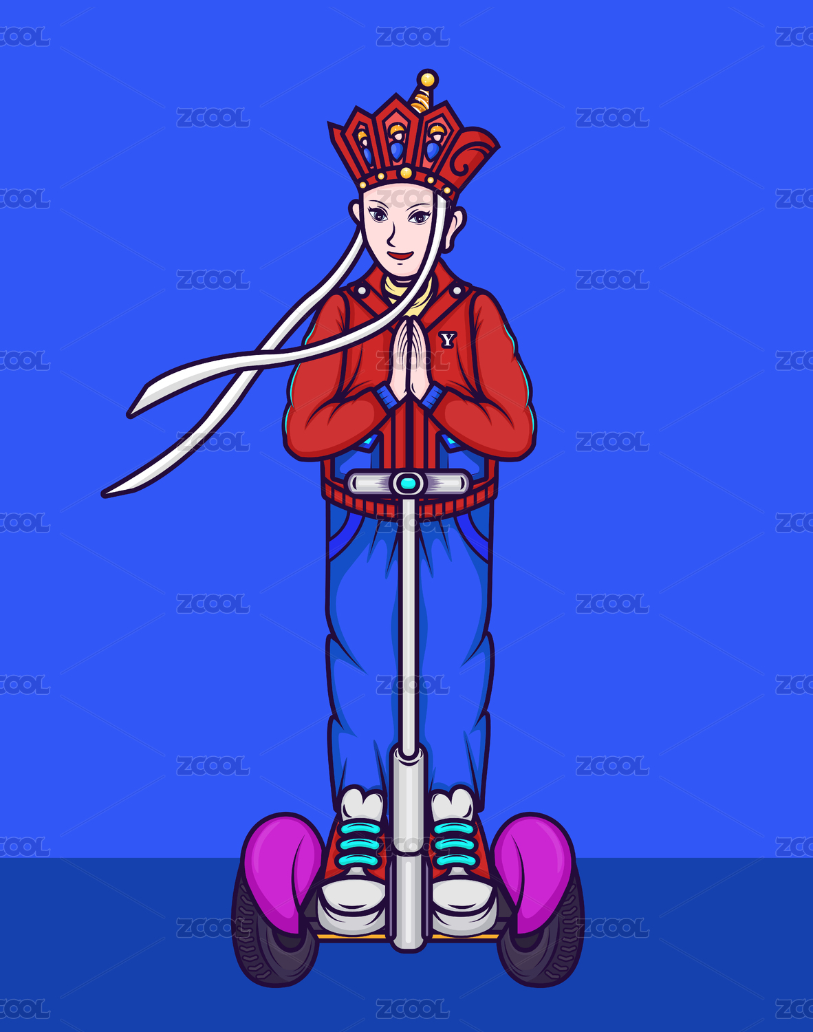唐僧和尚可爱抽象扁平创意商业拼色矢量插画