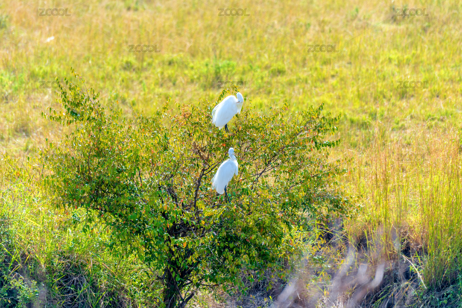 非洲肯尼亚马赛马拉树上栖息的大白鹭