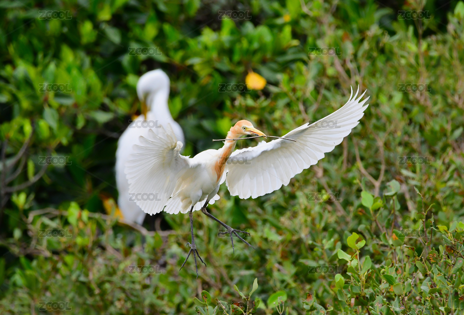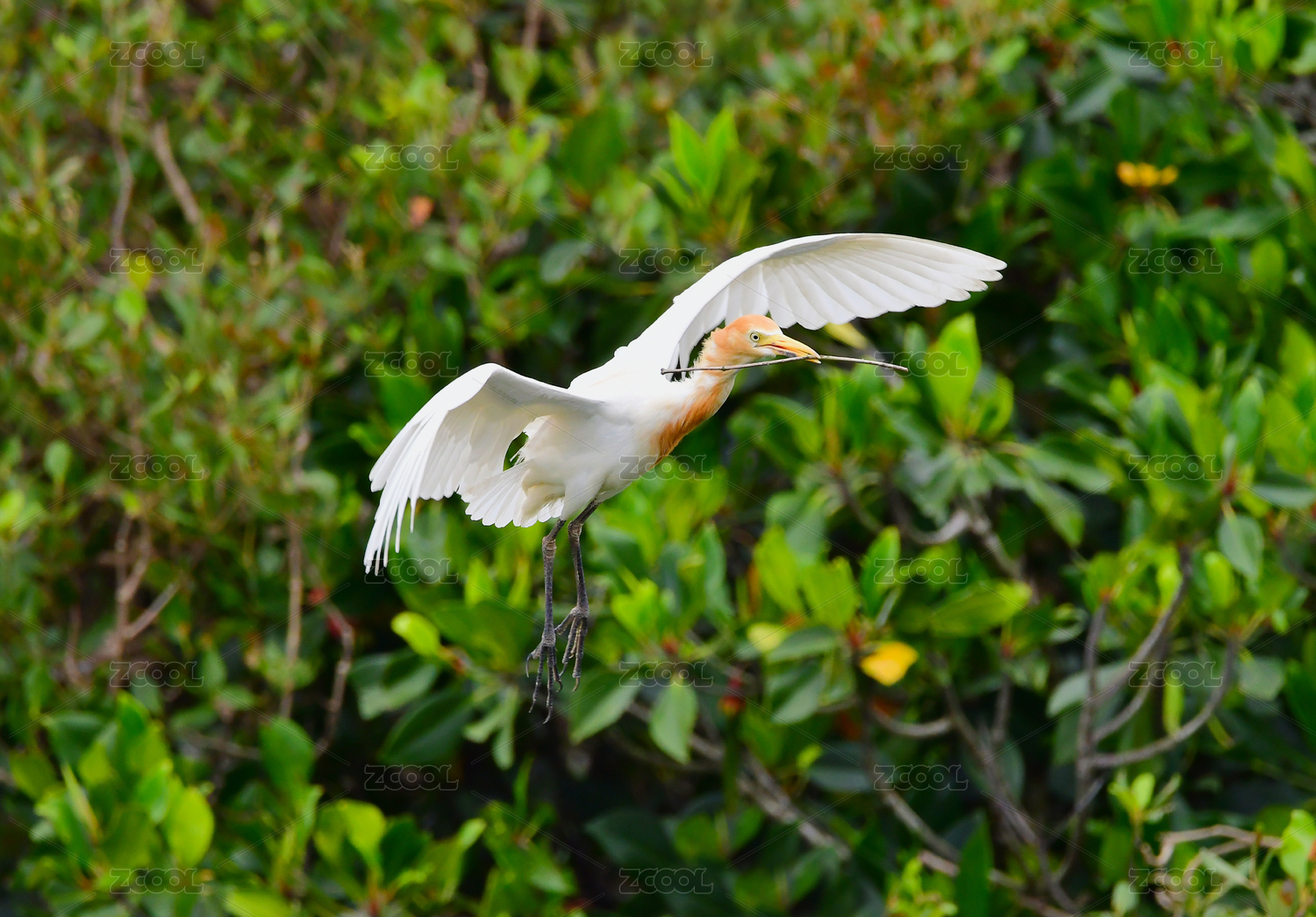 林间飞翔的大白鹭