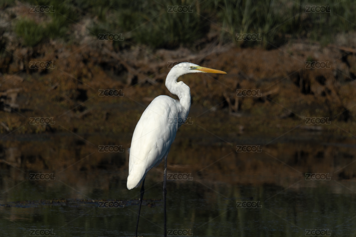 非洲肯尼亚纳瓦沙湖一只大白鹭正在湖边行走(Great White Egret))