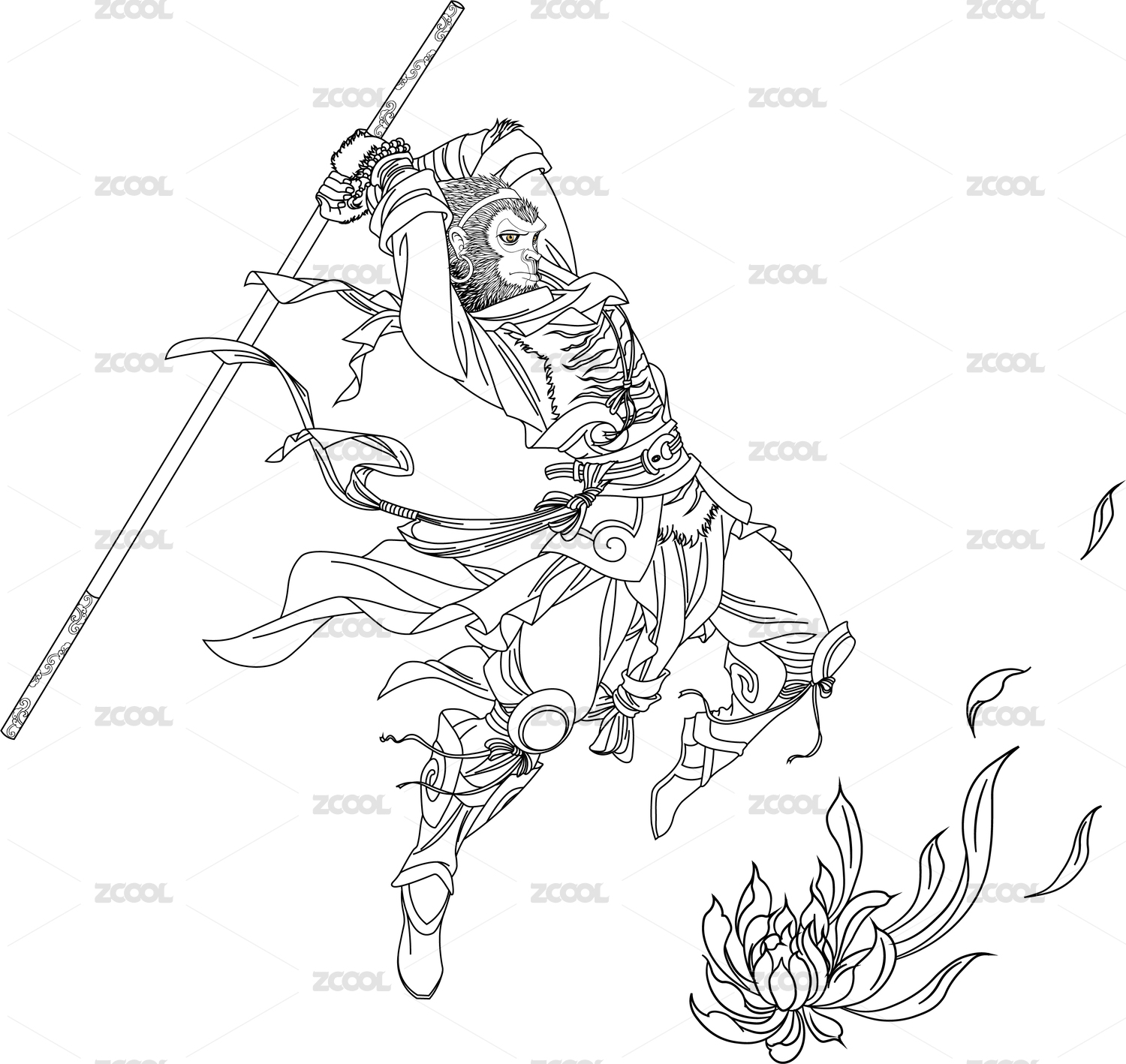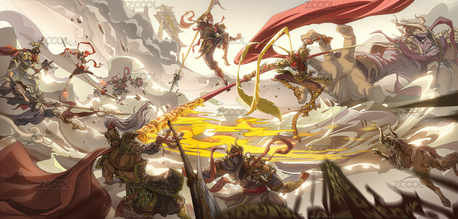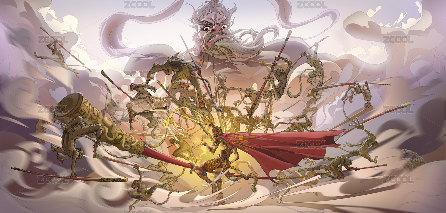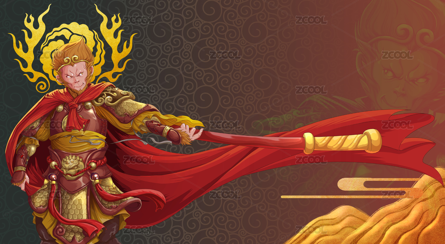 中国风国潮复古西游记齐天大圣孙悟空插画