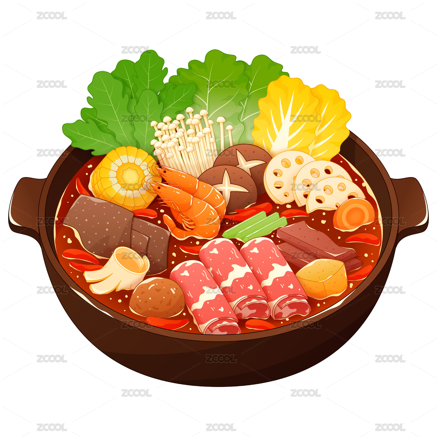 中国重庆传统特色美食麻辣火锅插画