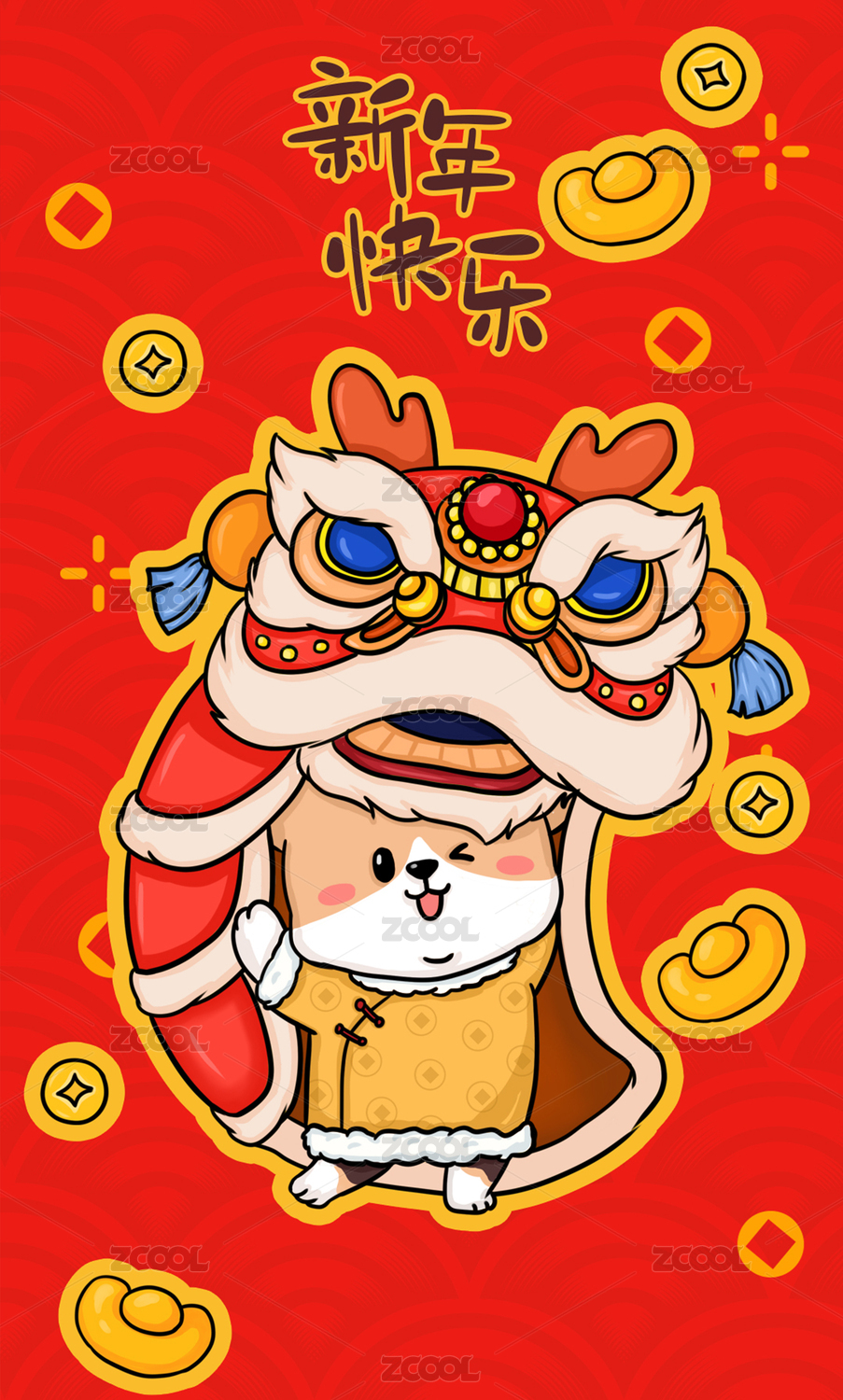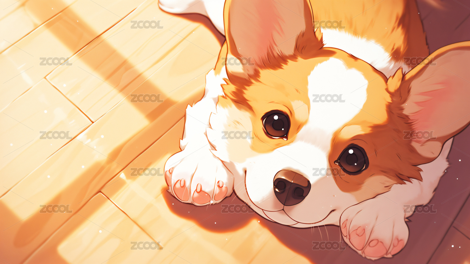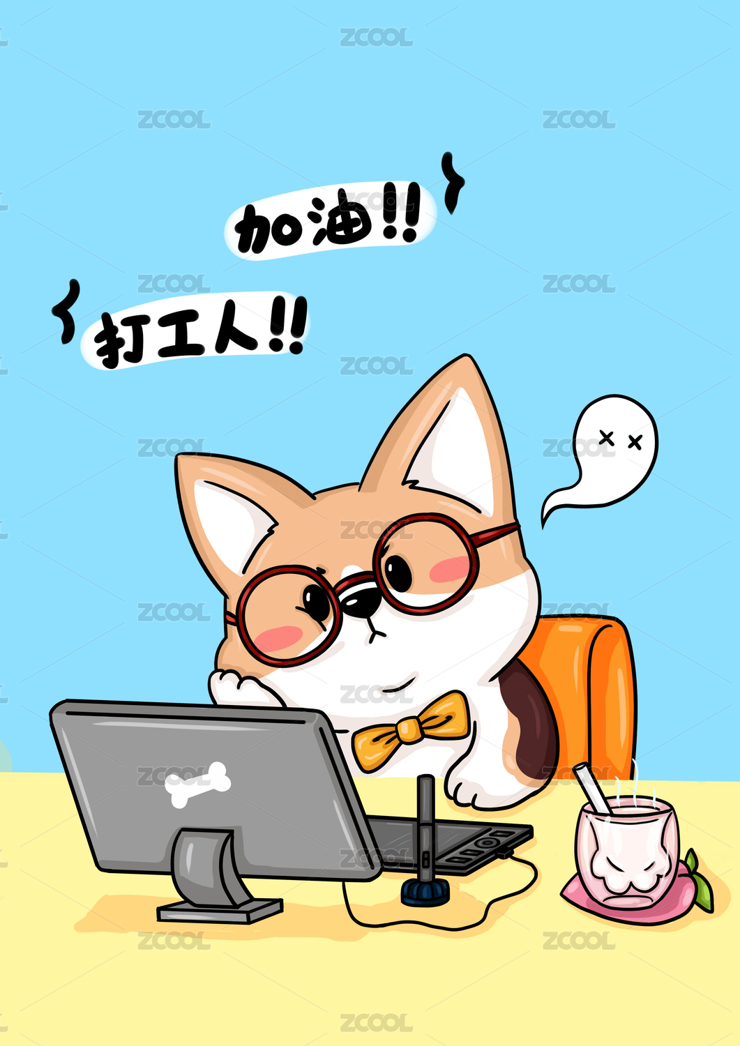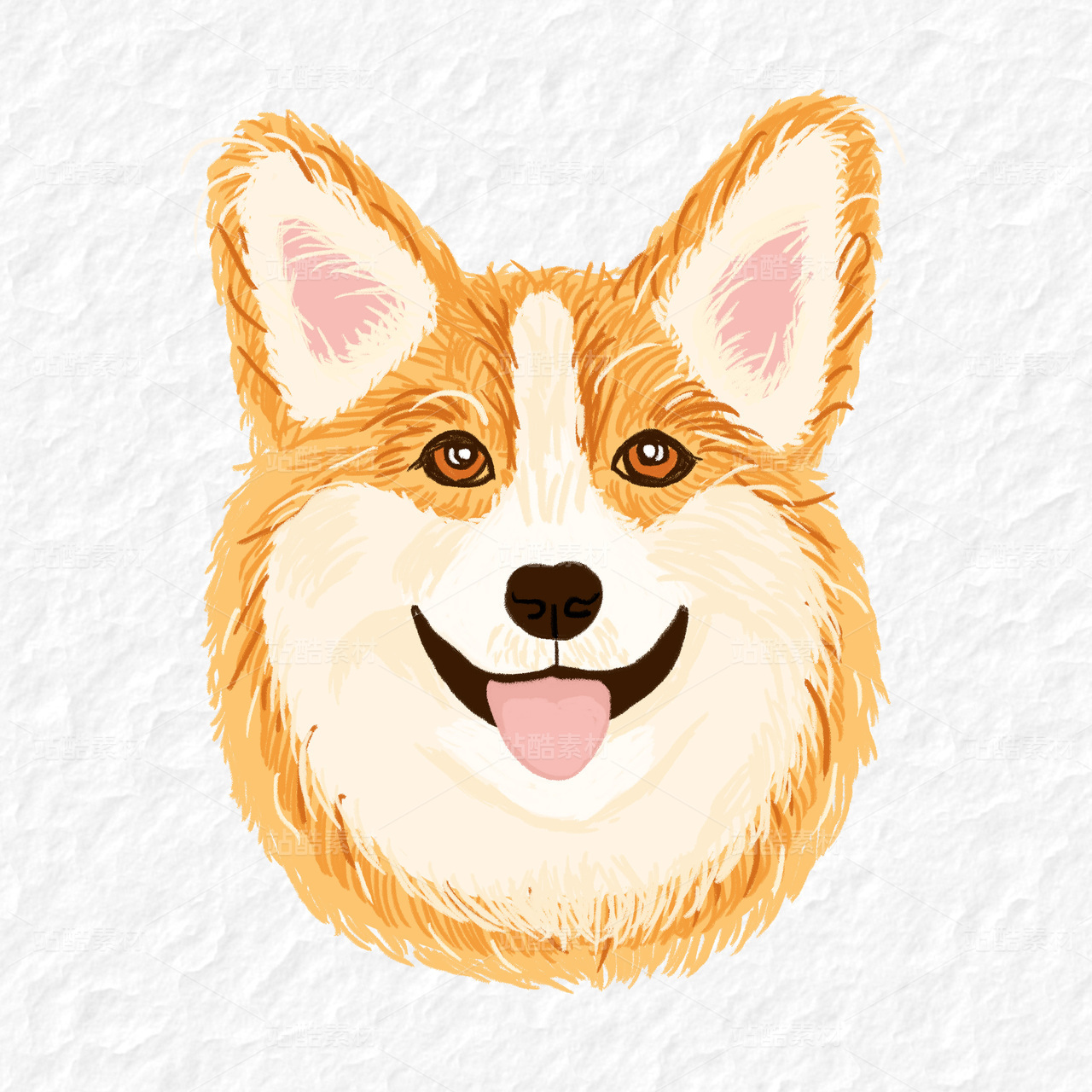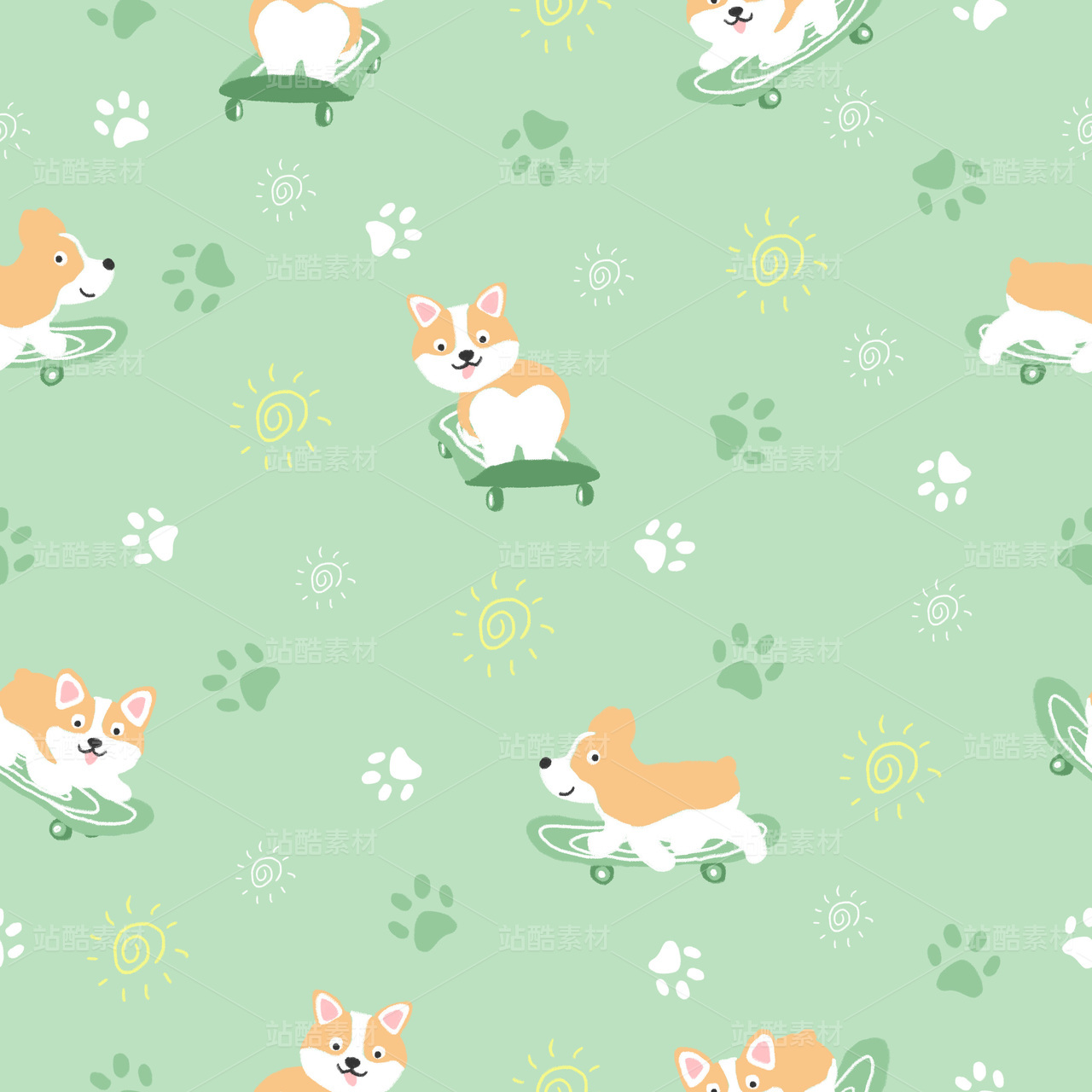 柯基玩滑板炭笔手绘风PS分层四方连续图案
