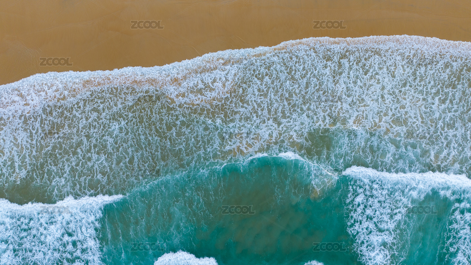 航拍东南亚泰国普吉岛绿松石波浪冲刷沙滩