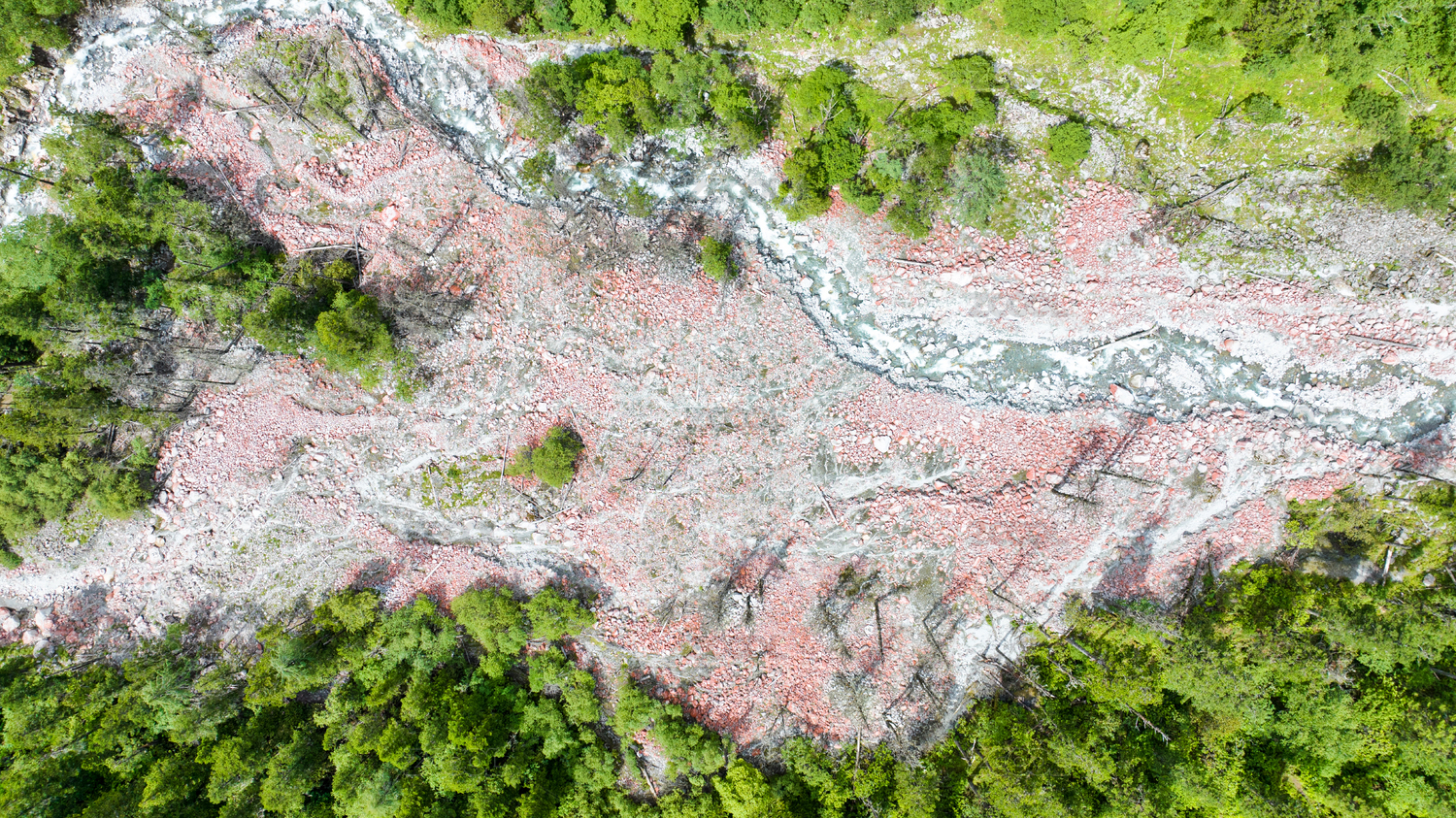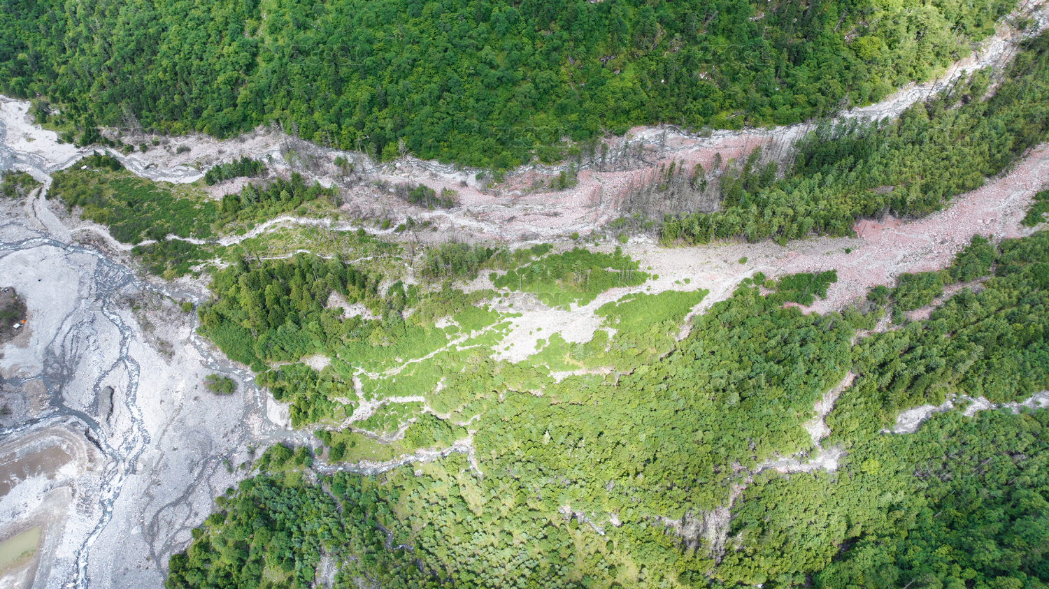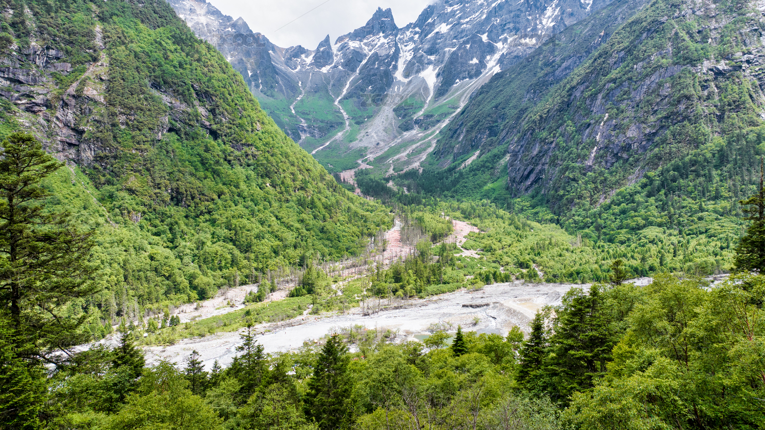 阿坝理县理小路玉兔峰附近山体被冲刷的痕迹