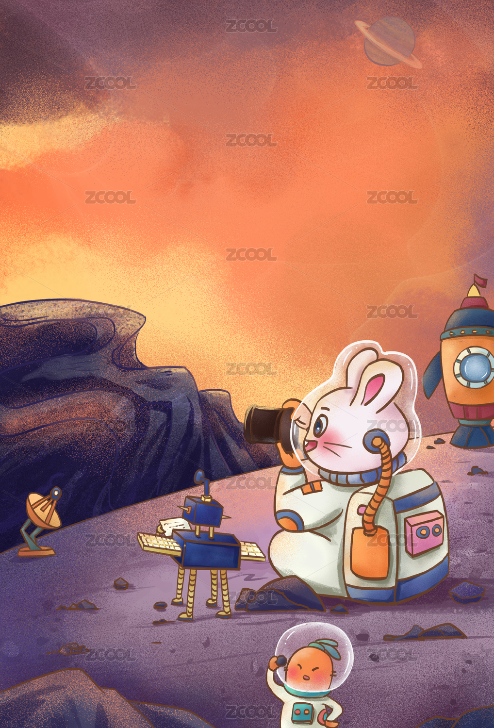 在火星探测的太空兔子插画