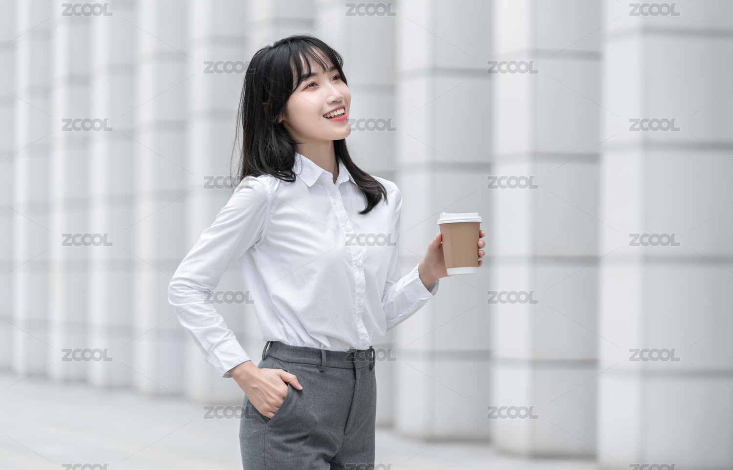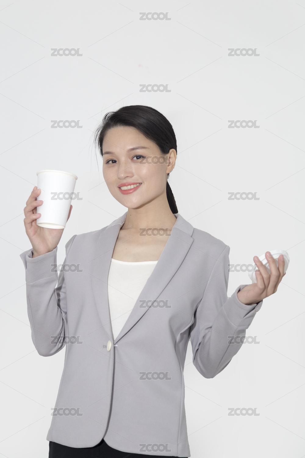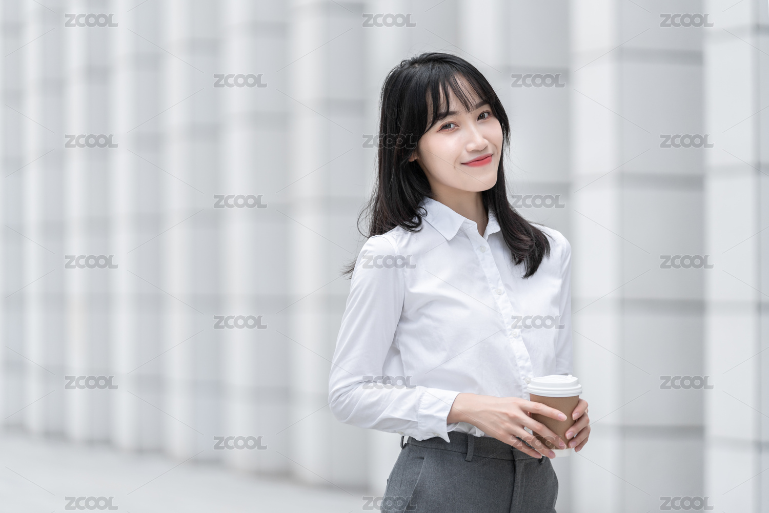 一个拿纸杯的职场女人