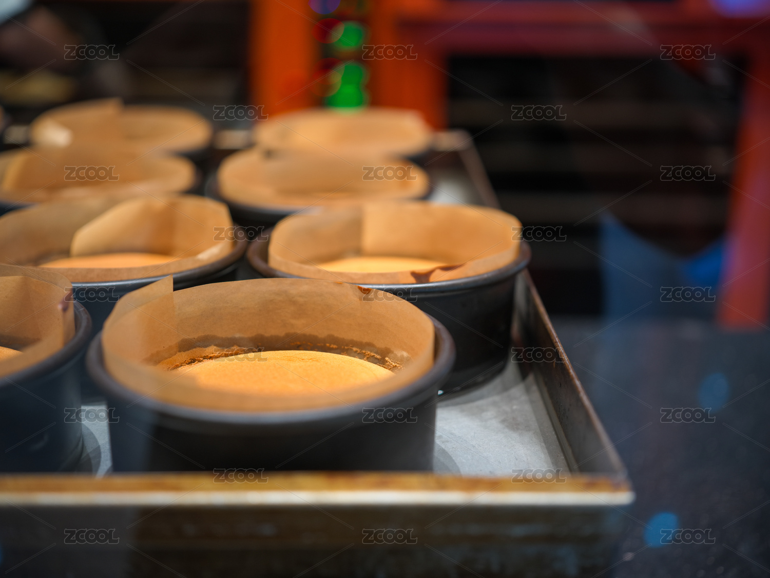 新鲜出炉的纸杯蛋糕展示在烤盘上