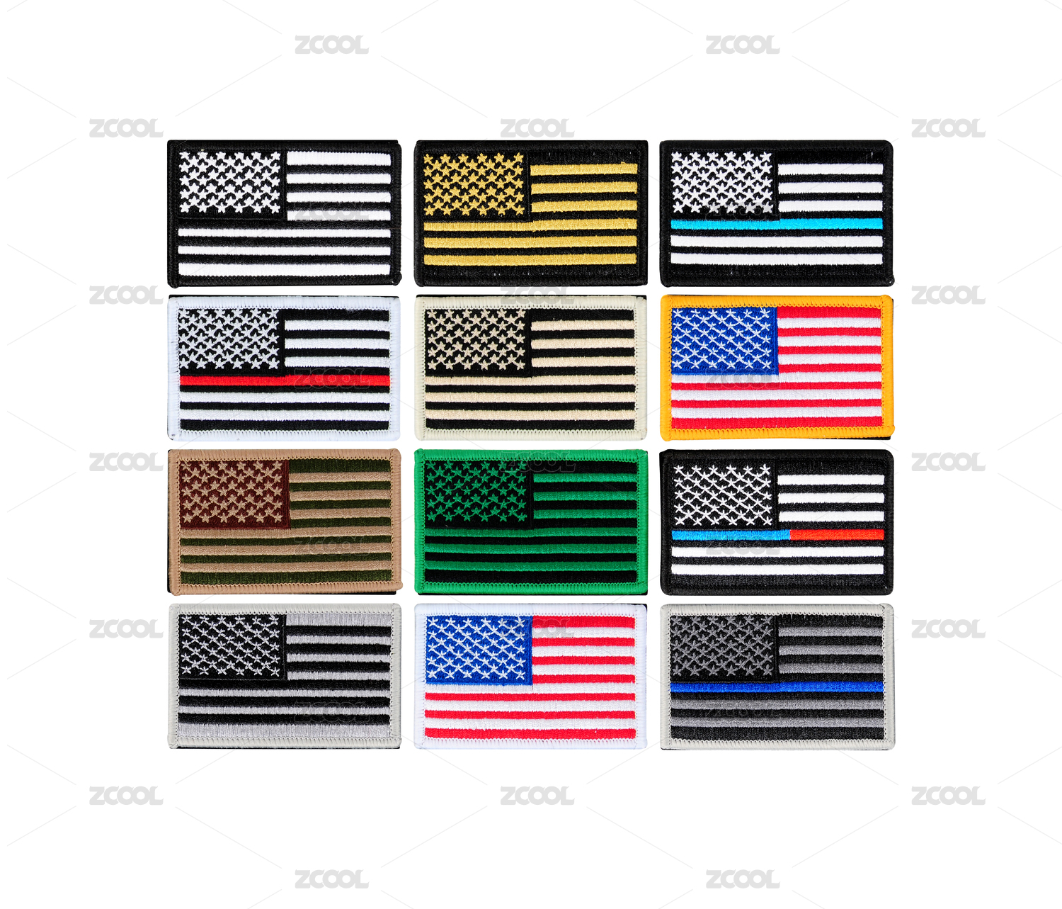 白色背景中的美国国旗臂章魔术贴