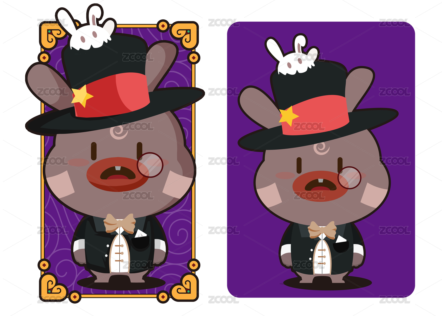 魔术师兔子绅士卡通形象矢量插画