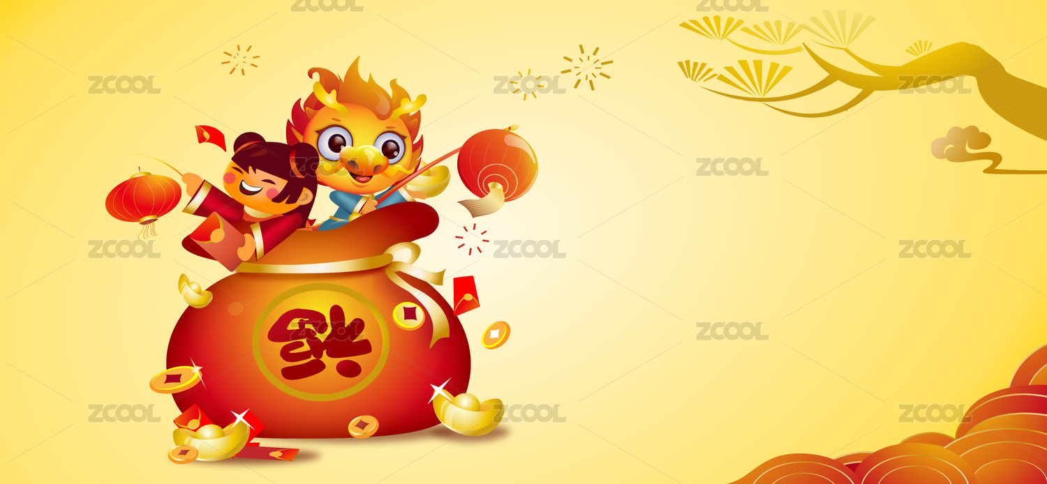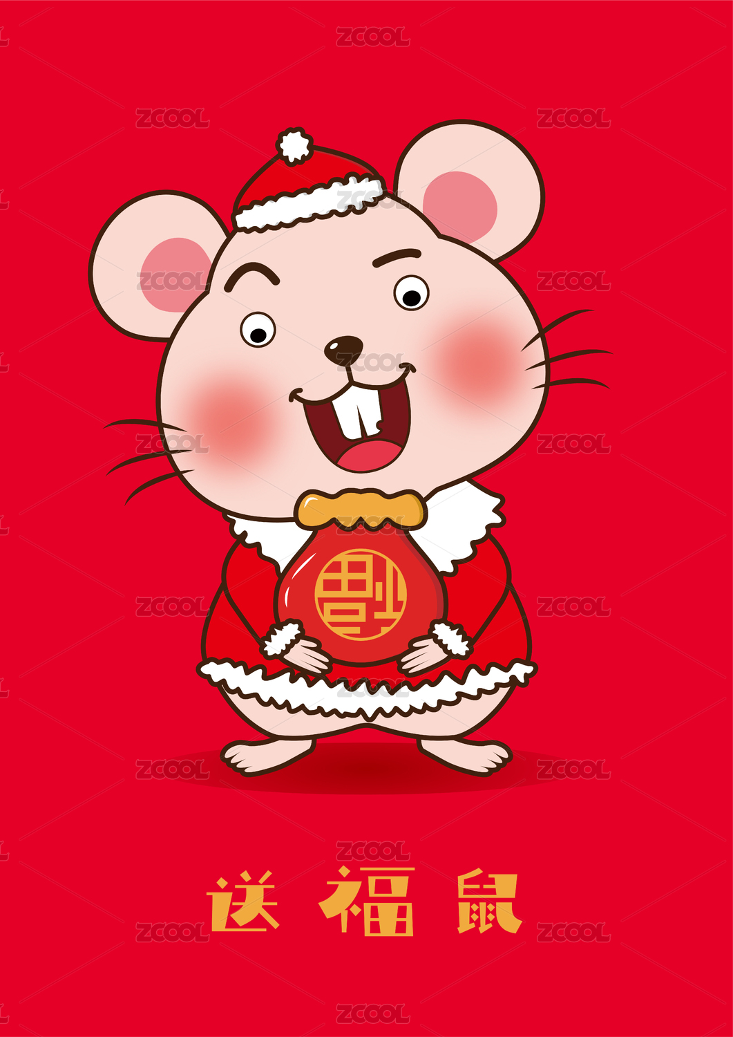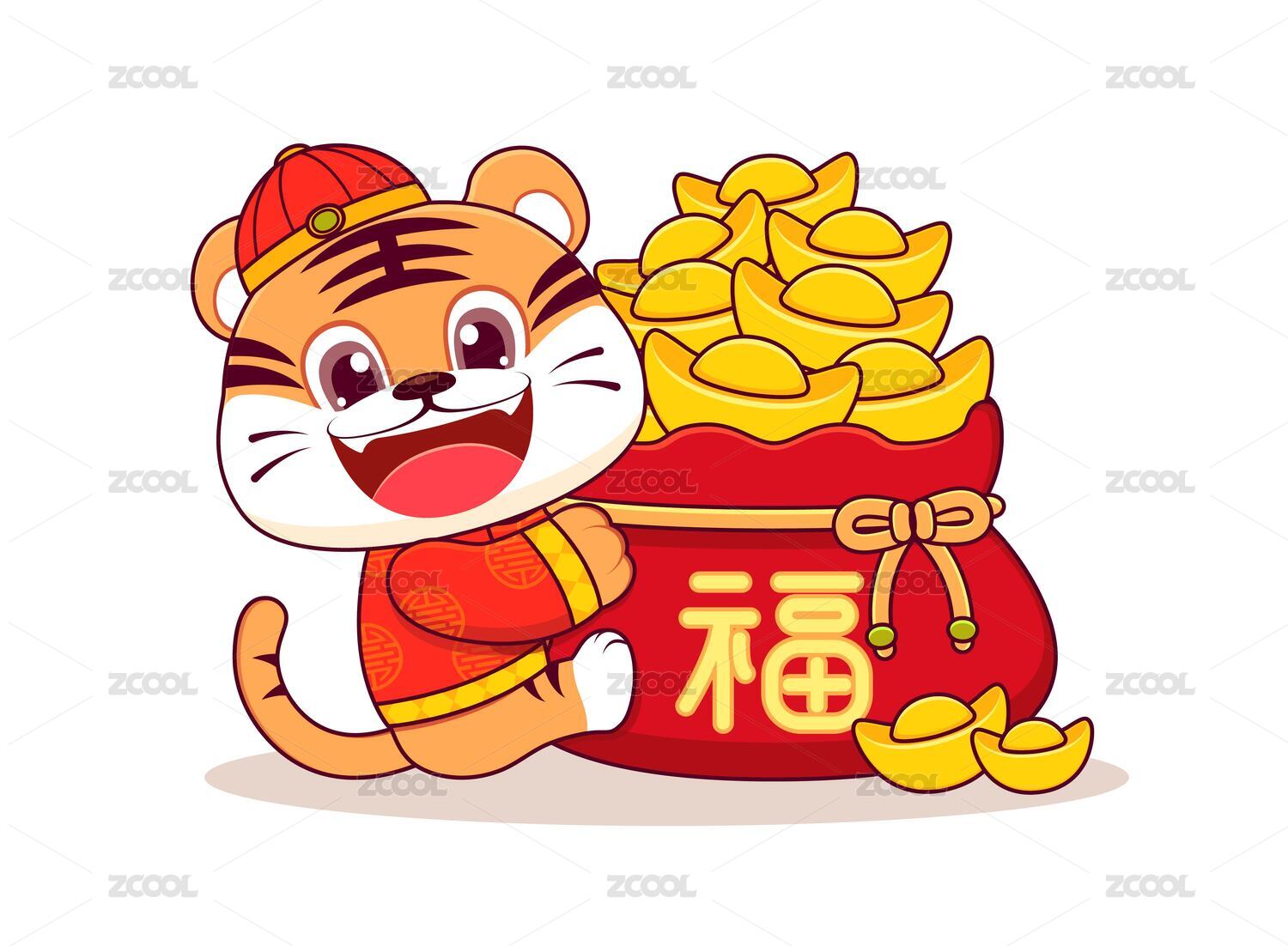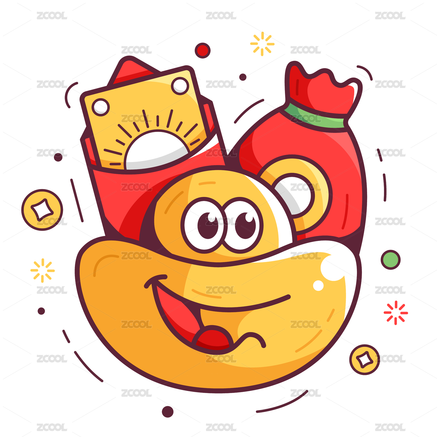 春节潮流元素矢量插画吉庆贴纸福袋红包