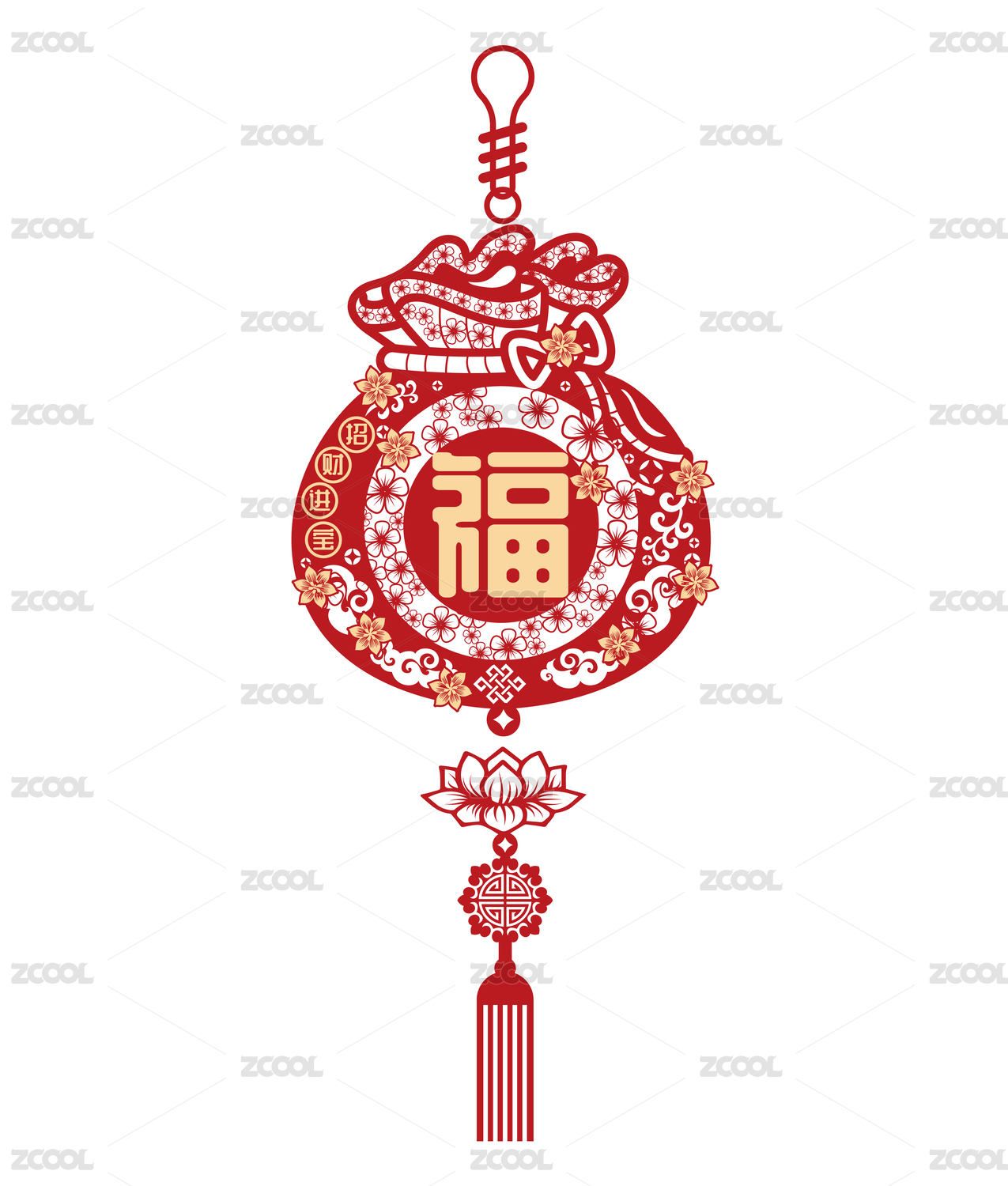 新年红色矢量剪纸对联福袋元宝鲤鱼葫芦插画