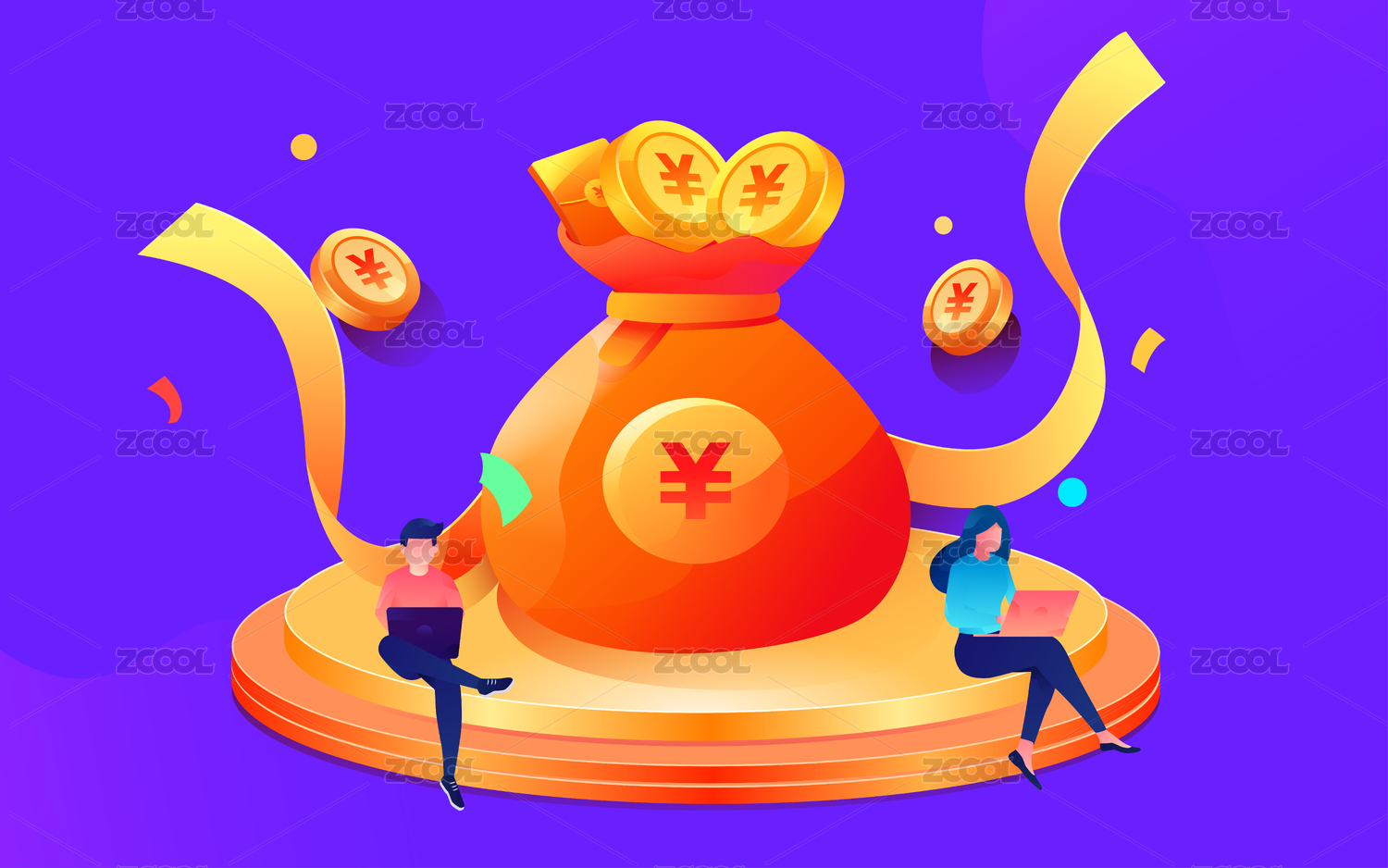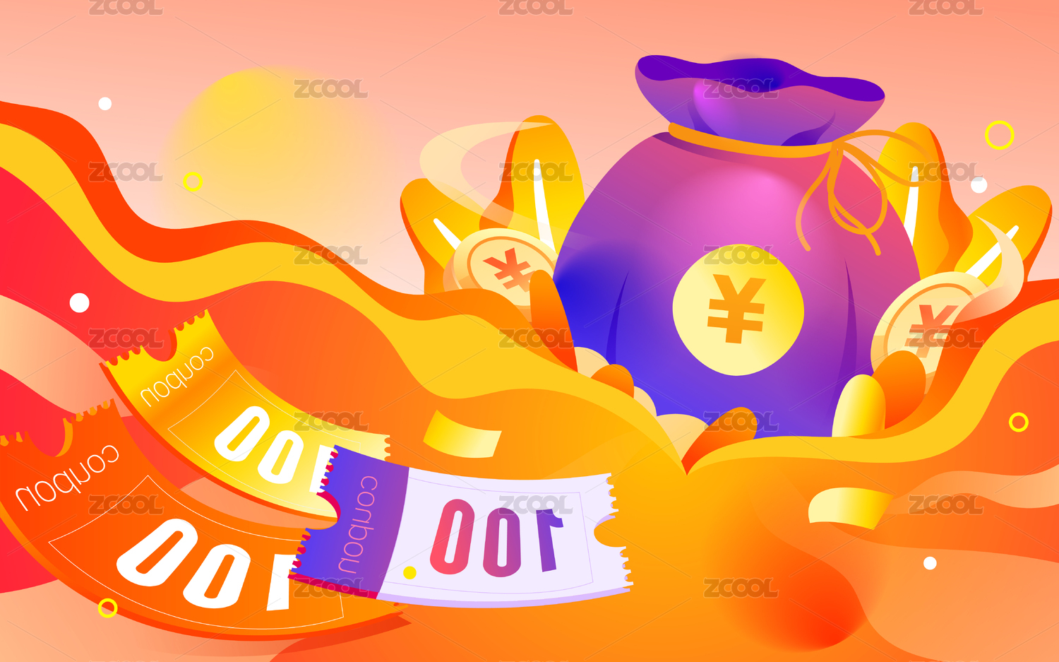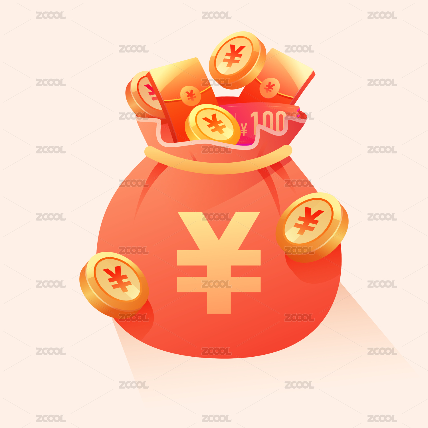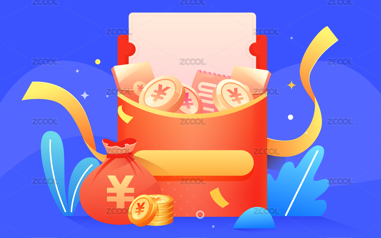 金融理财节日活动抽奖红包福袋金币矢量插画