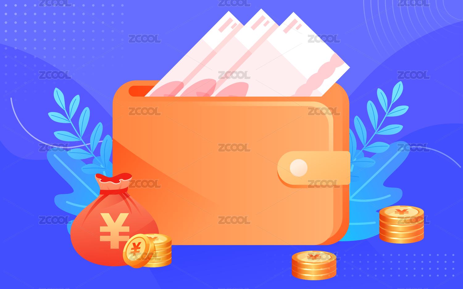 卡通抽奖转盘互联网金融收益福袋理财插画