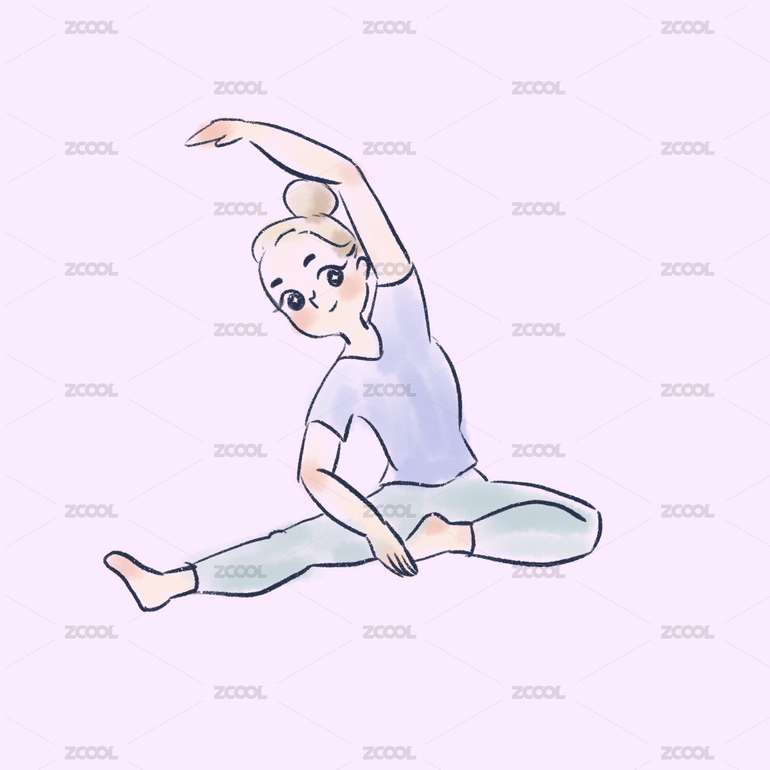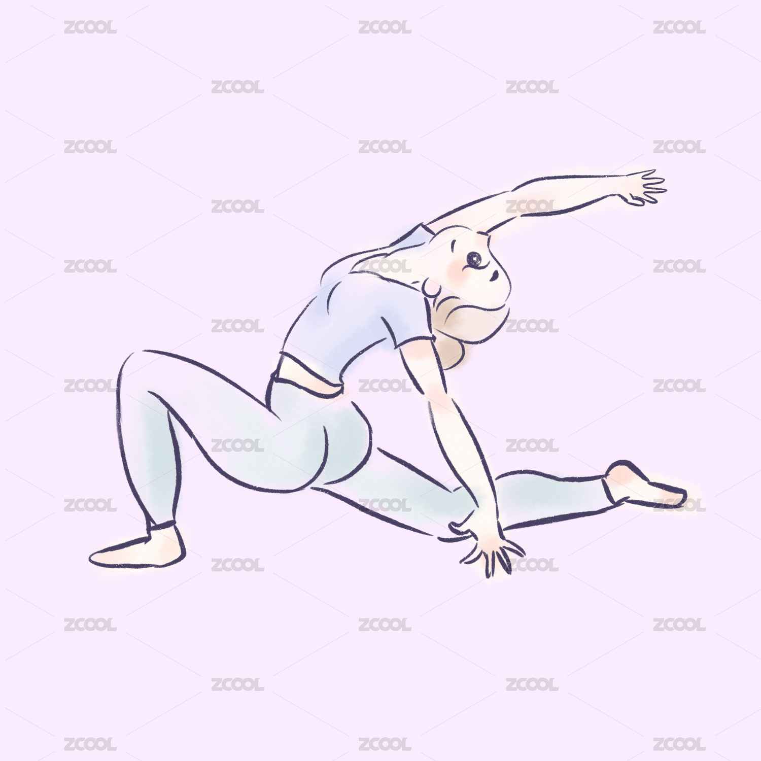 水彩插画练瑜珈的女孩
