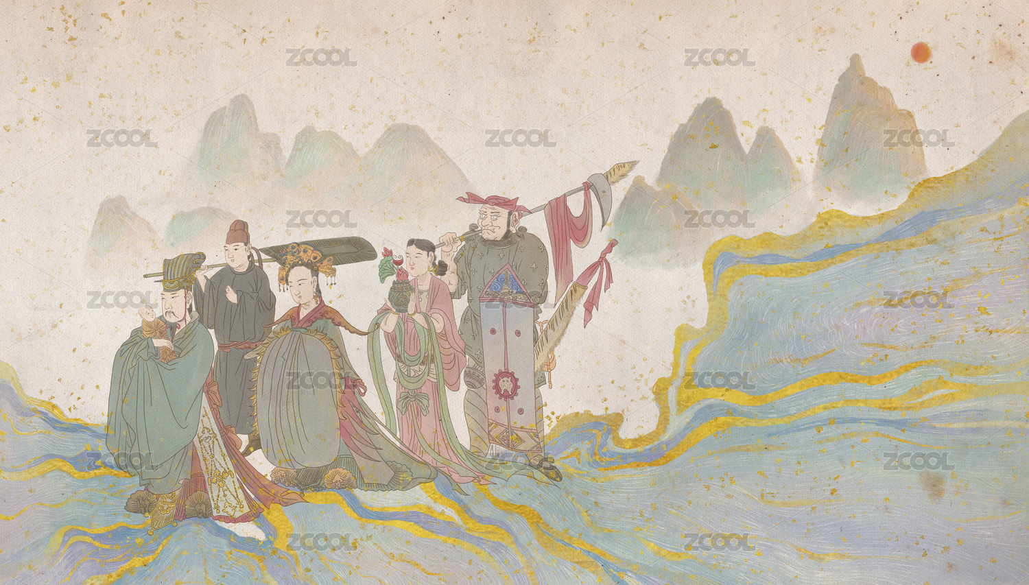 手绘古代卡通神仙