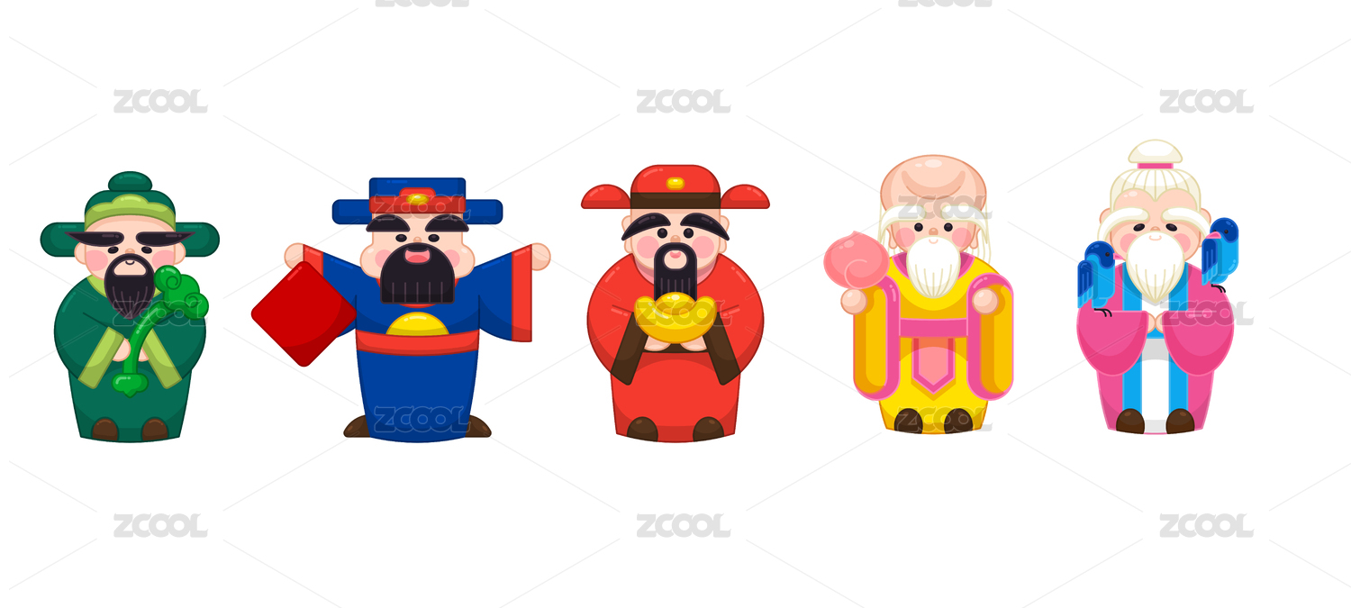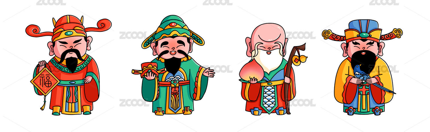 新春中国传统卡通福禄寿喜神仙