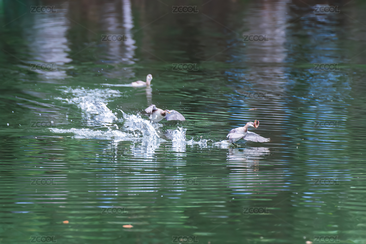 在盘锦红海滩湿地追逐嬉戏的两只丹顶鹤